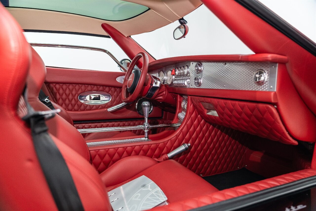 Own this amazing piece of automotive history! Clearly the interior and exterior of this unique automobile were ahead of its' time! The amount of detail and aluminum abounds on the C8 Laviolette! Freshly serviced and ready to head to your collection, this Spyker has been well cared for, and it shows! The Laviolette was the second C8 model to be developed, and was unveiled by Spyker at AutoRAI 2001. The Laviolette has the same Audi 4.2-litre V8 engine producing 400hp as the Spyder, but replaces the Spyder's retractable soft top roof with a fixed glass canopy and an integrated roof air intake, making it the first C8 Coupé. 55 Laviolettes were built in total. 2009 was the last year for production of the Laviolette making this example the most sought after!