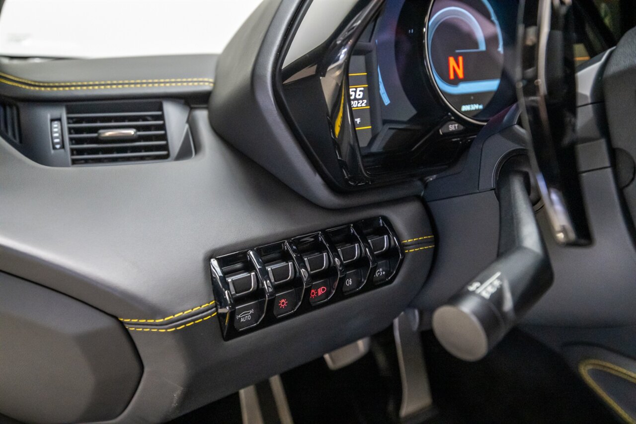 The Aventador is just so much better when you remove the top! This Aventador Roadster does not disappoint with this long list of factory options: Metallic Color Nero Pegaso, Rims Dione Forged, Branding Package, Brake calipers in yellow, Transparent engine bonnet, Lamborghini Sensonium Sound system upgrade, Multifunction steering wheel, Contrast stitching, Fully electric and heated seats, T shaped engine cover in carbon fiber, Yellow rear suspension, Homelink, Park assist with sensor front and rear and rear camera. Freshly serviced and ready to be enjoyed the time is now for your new Aventador Roadster!