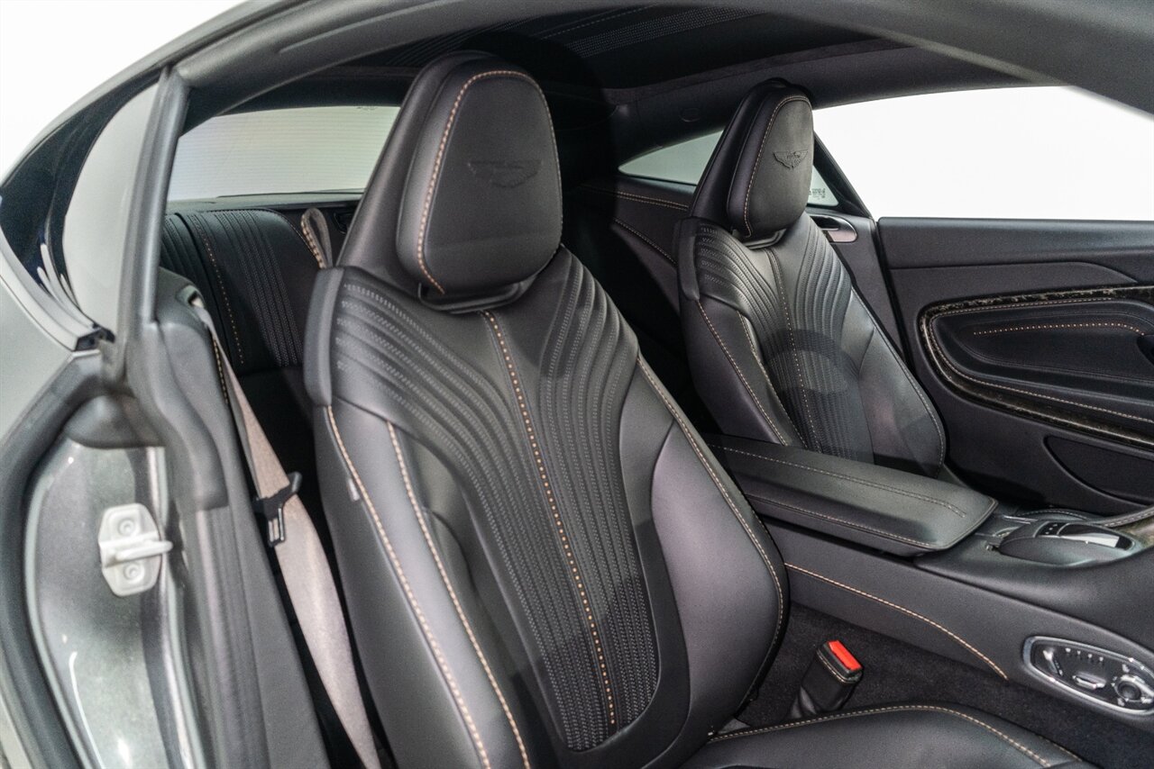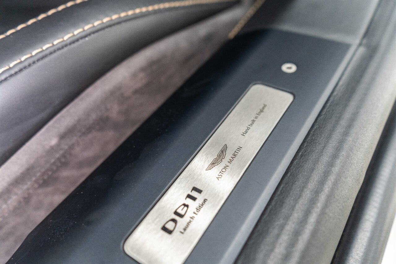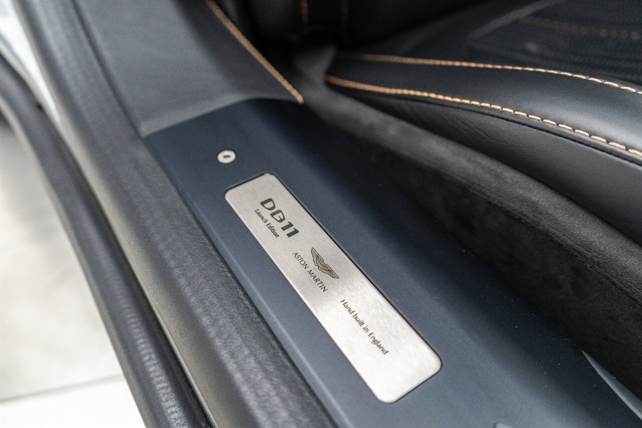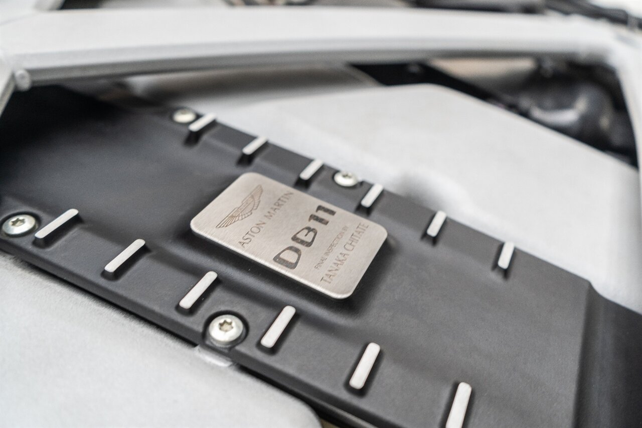 The Ultimate Grand Touring coupe, the Aston Martin DB11 Twin Turbo V12 is an amazing car with effortless power! This example is a Launch Edition, meaning it comes loaded with factory options: Power seat bolsters, Brogue Detailing, brake calipers (black), ventilated front seats, dark exterior finisher package, contrast stitching, embossed wings, seat belts Graphite, Internal Shadow pack, Luxury Pack, trim inlay chopped carbon, 10 Speaker directional shadowline chrome sound upgrade! Fully serviced and ready for you to enjoy, this DB11 is amazing!