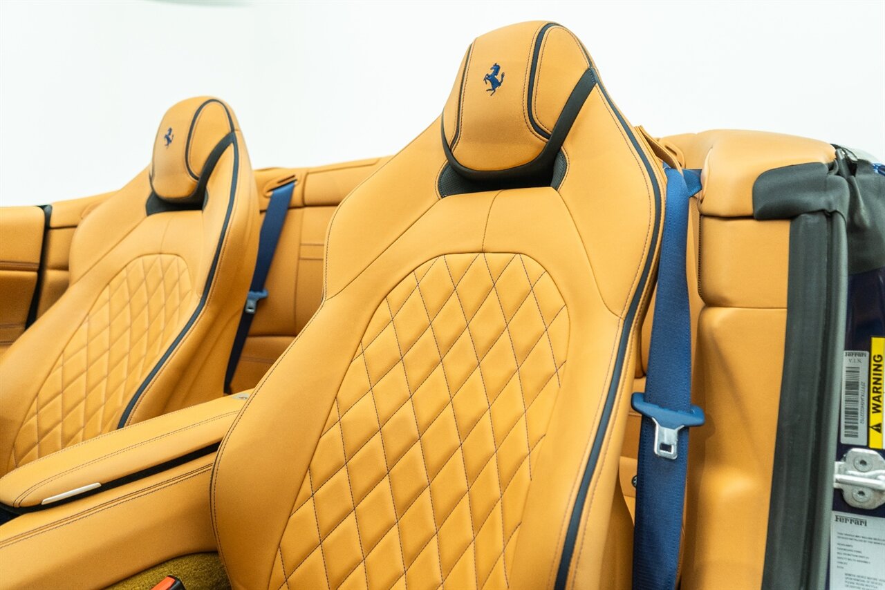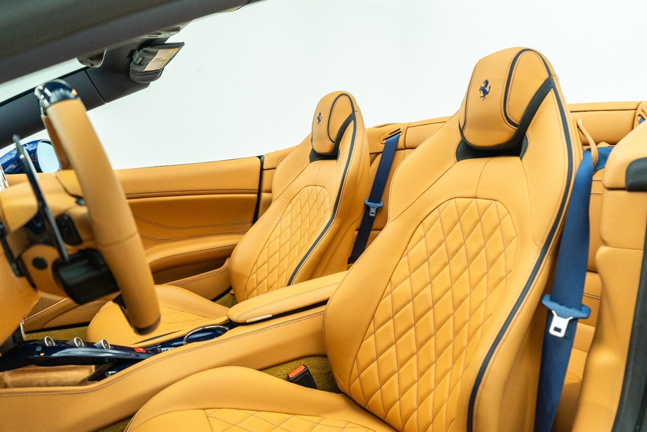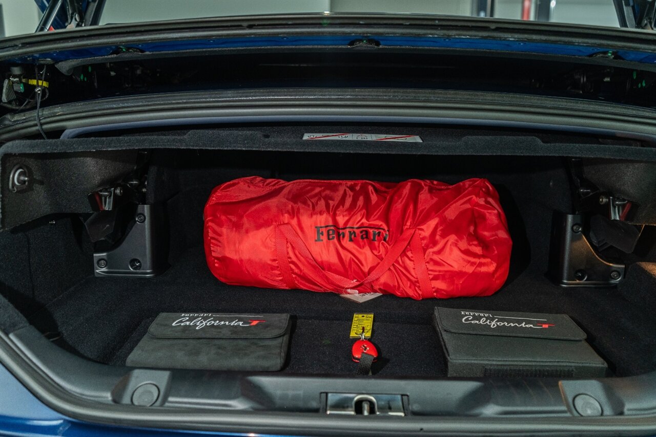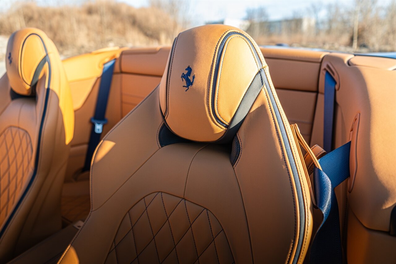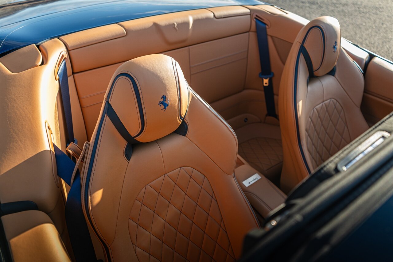 This VERY SPECIAL Tour de France Blu California T came from its' single owner and the build is out of this world! Starting with the Blue Carbon Fiber throughout the cabin and door sill plates to compliment the Tour de France Blu so nicely. Full leather interior throughout the cabin including the convertible roof in bespoke Blu Sterling leather to match the dash and upper door leather. Diamond stitching on the full electric and heated seats complimented by Blu Sterling thread add to the beauty of this unique build. Freshly serviced and ready for you to enjoy, this ONE OF A KIND California T is something special!