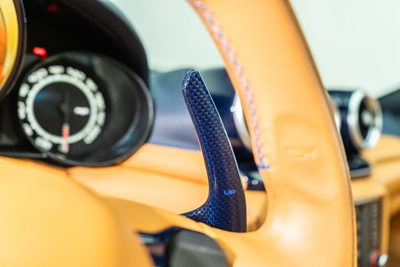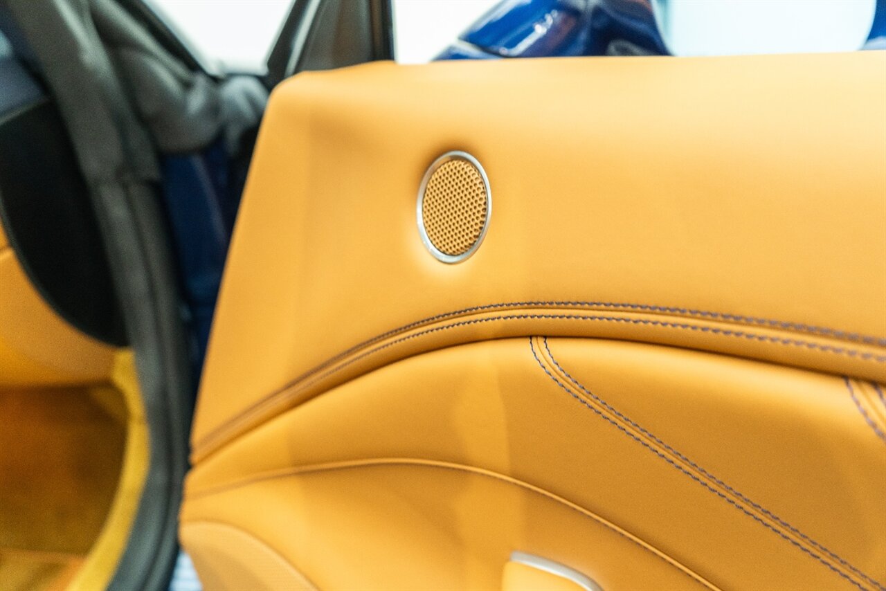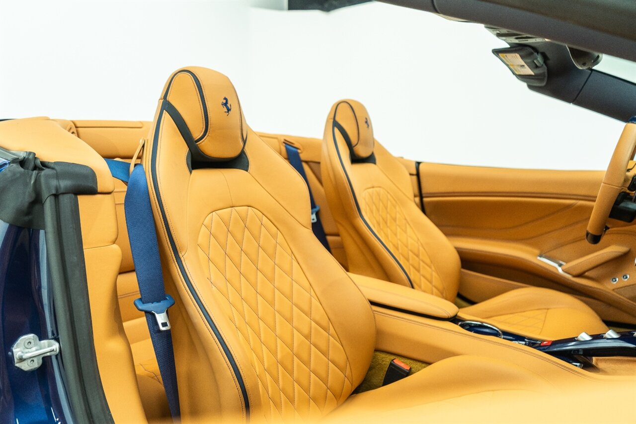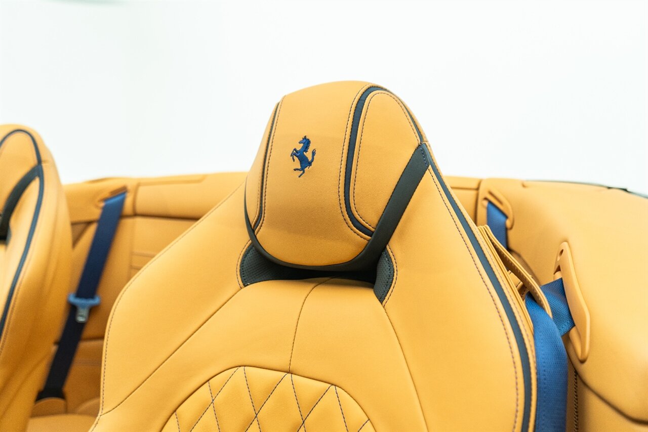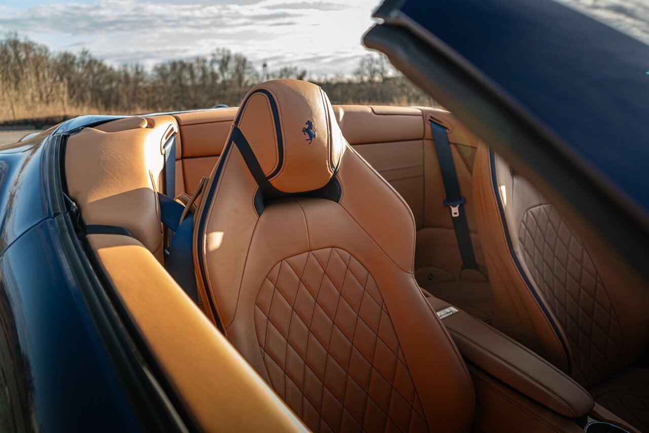 This VERY SPECIAL Tour de France Blu California T came from its' single owner and the build is out of this world! Starting with the Blue Carbon Fiber throughout the cabin and door sill plates to compliment the Tour de France Blu so nicely. Full leather interior throughout the cabin including the convertible roof in bespoke Blu Sterling leather to match the dash and upper door leather. Diamond stitching on the full electric and heated seats complimented by Blu Sterling thread add to the beauty of this unique build. Freshly serviced and ready for you to enjoy, this ONE OF A KIND California T is something special!