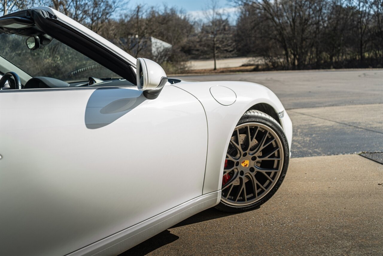This Carrera S Cabriolet is simply stunning! Loaded with factory options this Porsche does not disappoint. Options include: PDK Transmission, Sport Exhaust system, 20" RS Spyder Design wheels, Heated Multifunction steering wheel, Wheel caps colored crest, GT Sport Steering wheel, BOSE Surround sound system, 14 Way Power seats, Sport Chrono package, headlamp cleaner in exterior color, Premium Package Plus (Porsche entry and drive, LED headlights, Light design package, Heated and ventilated seats). 2 keys, books and original window sticker accompany this awesome car!