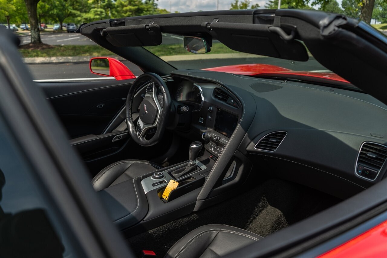 This stunning, low mile Corvette is ready to be enjoyed by its' new owner! Featuring removable transparent roof panel, 8 spd Auto transmission, Z51 style spoiler, Red brake calipers, black painted wheels and red seat belts. This low mile, 1 owner Stingray is the ONE you have been looking for!