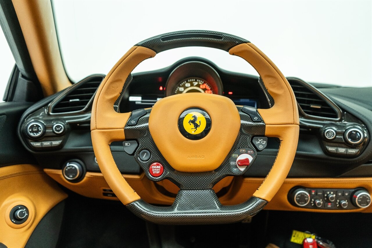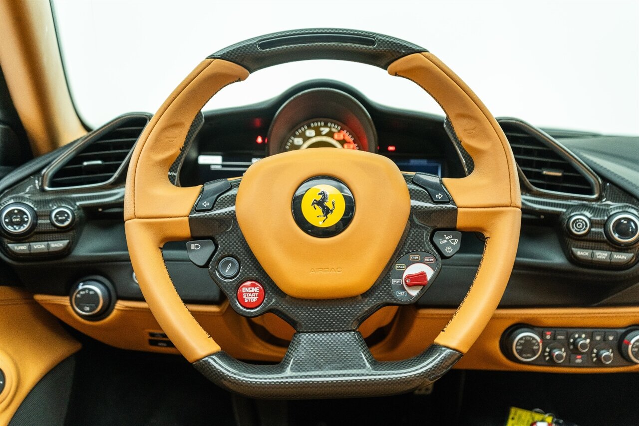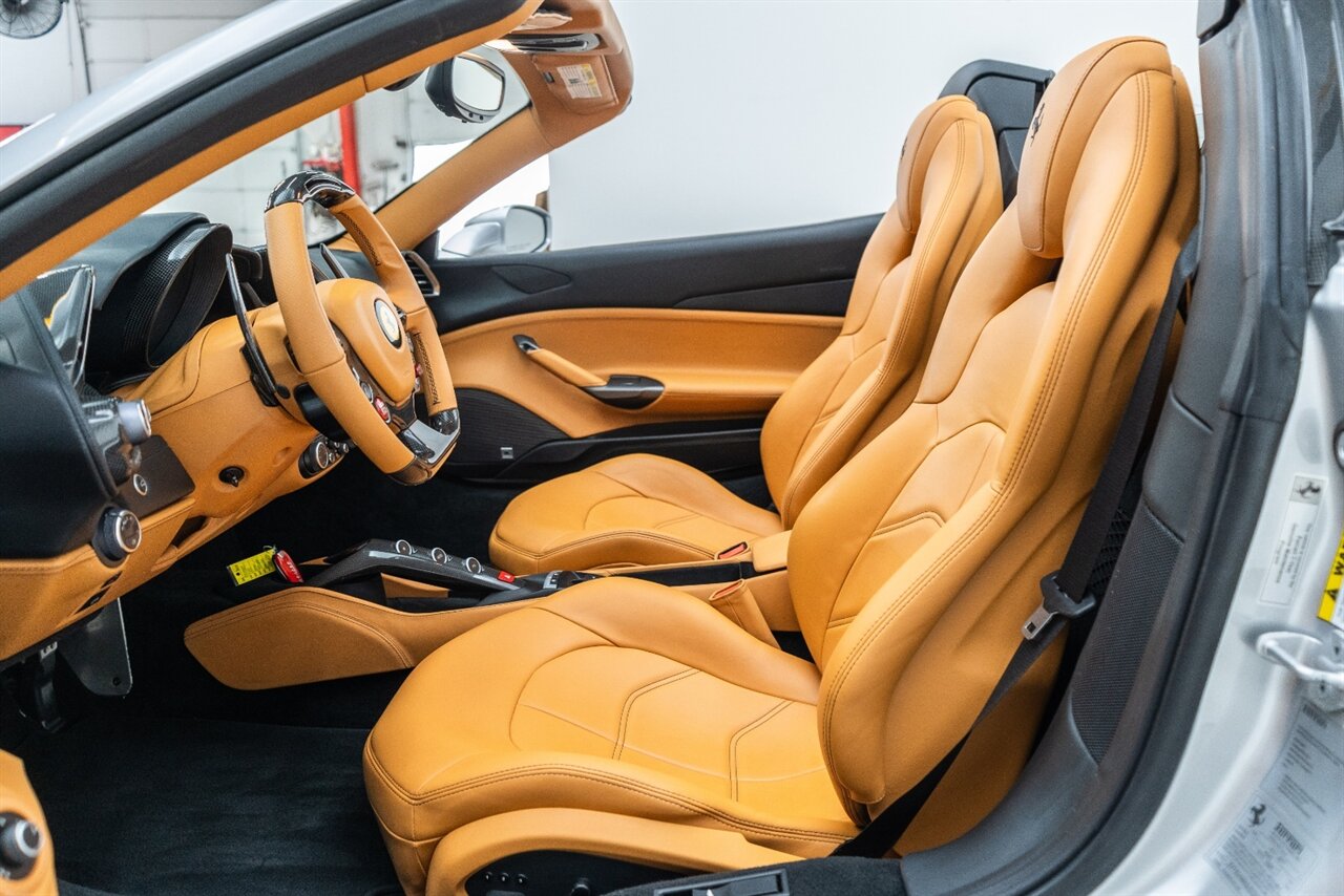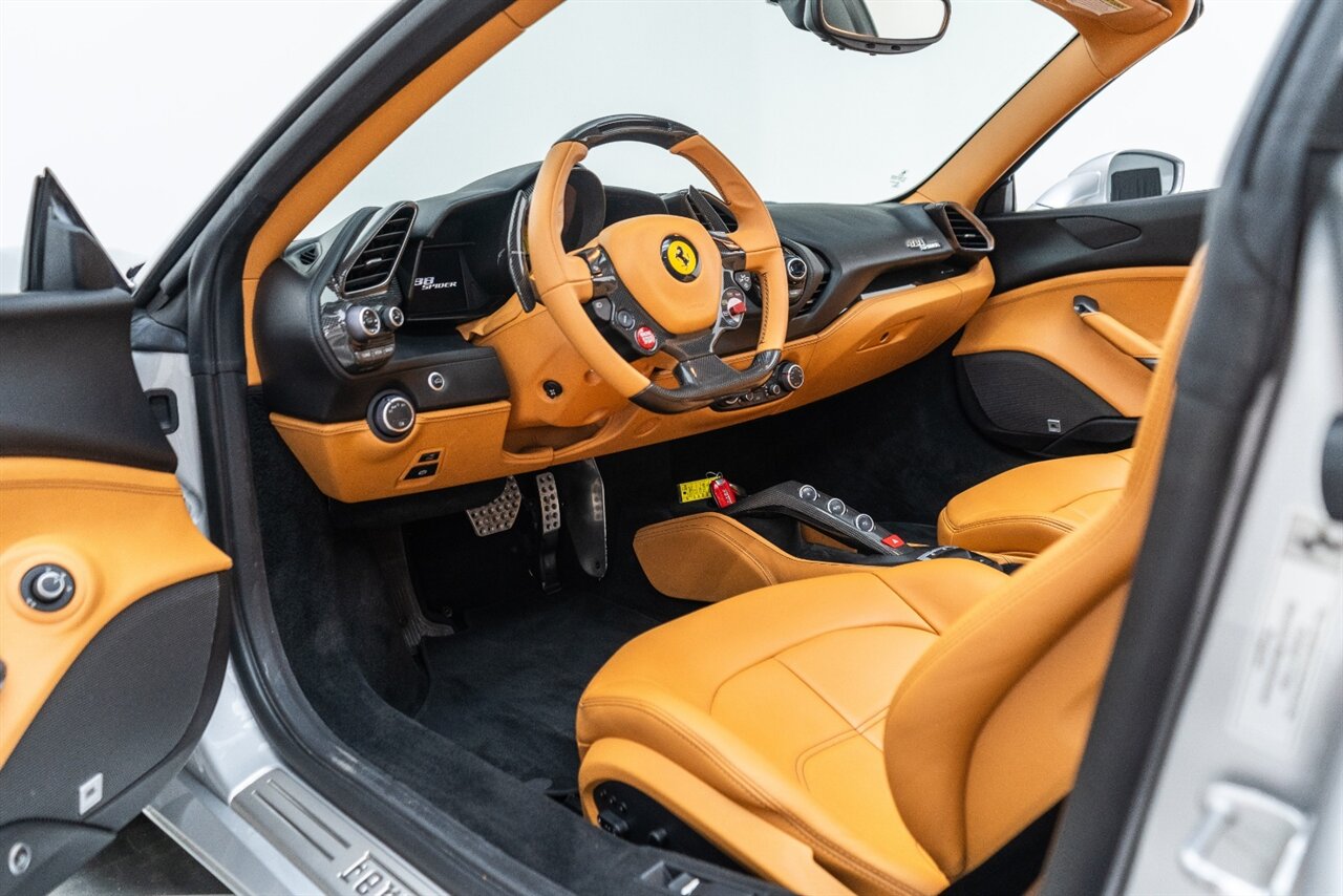 The 660 HP Ferrari 488 Spider is an absolute JOY to drive! The endless torque from the twin turbo V8 will leave a smile on your face every time you get behind the wheel! Factory options include: Carbon Fiber LED steering wheel, carbon fiber central bridge, carbon fiber full dashboard, carbon fiber B pillar, FULL electric and heated seats, Front SUSPENSION LIFTER, black wheel, yellow brake calipers, JBL Sound system upgrade, Scuderia Ferrari shields, front and rear parking cameras with park distance control, Sport exhaust pipes in black. Beautiful service history and freshly serviced here at Velocity, this is the 488 Spider you are looking for!