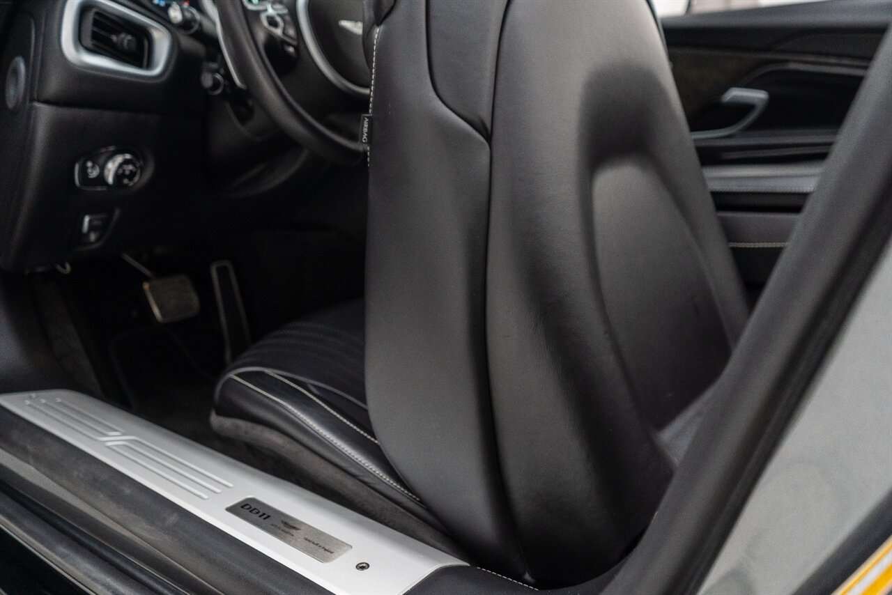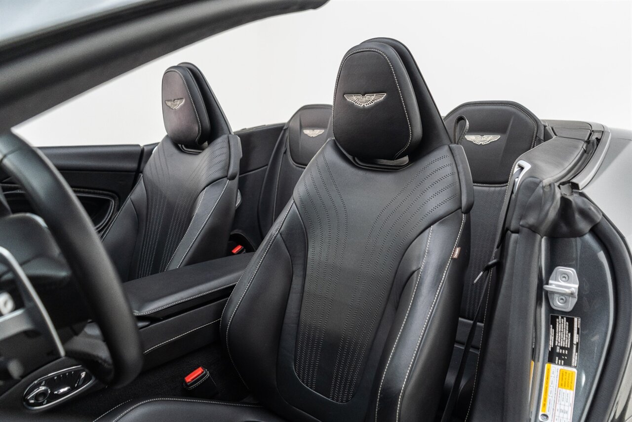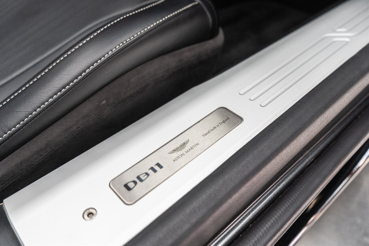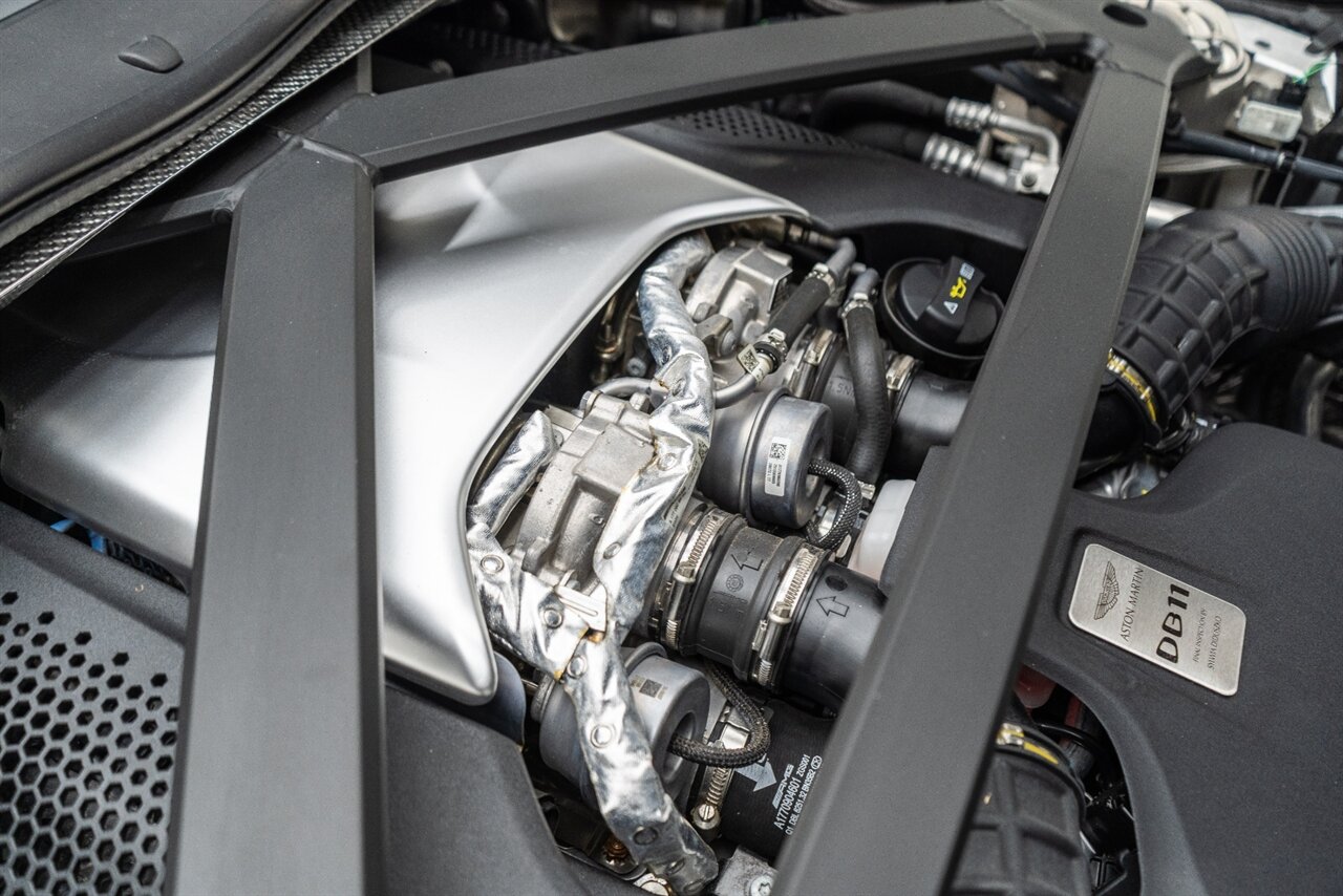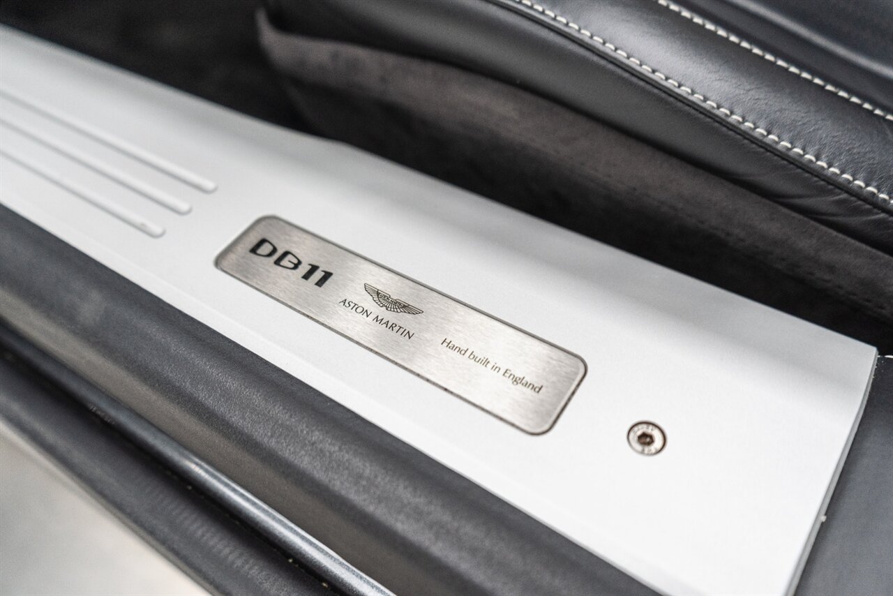 This amazing single owner trade Aston Martin DB11 Volante has impeccable service history and is absolutely the one you have been looking for! Featuring the following factory options: 21" F1 Style black wheels, Power seat bolsters, Red brake calipers, Ventilated front seats, Contrast color stitching, Leather color Contemporary, Headrest Embroidery Aston Martin Wings, Floor mats, Exterior Black package, Trim inlay Tamo Ash Dyed Open Pore. Enjoy this freshly serviced, stunning example of a DB11 today!