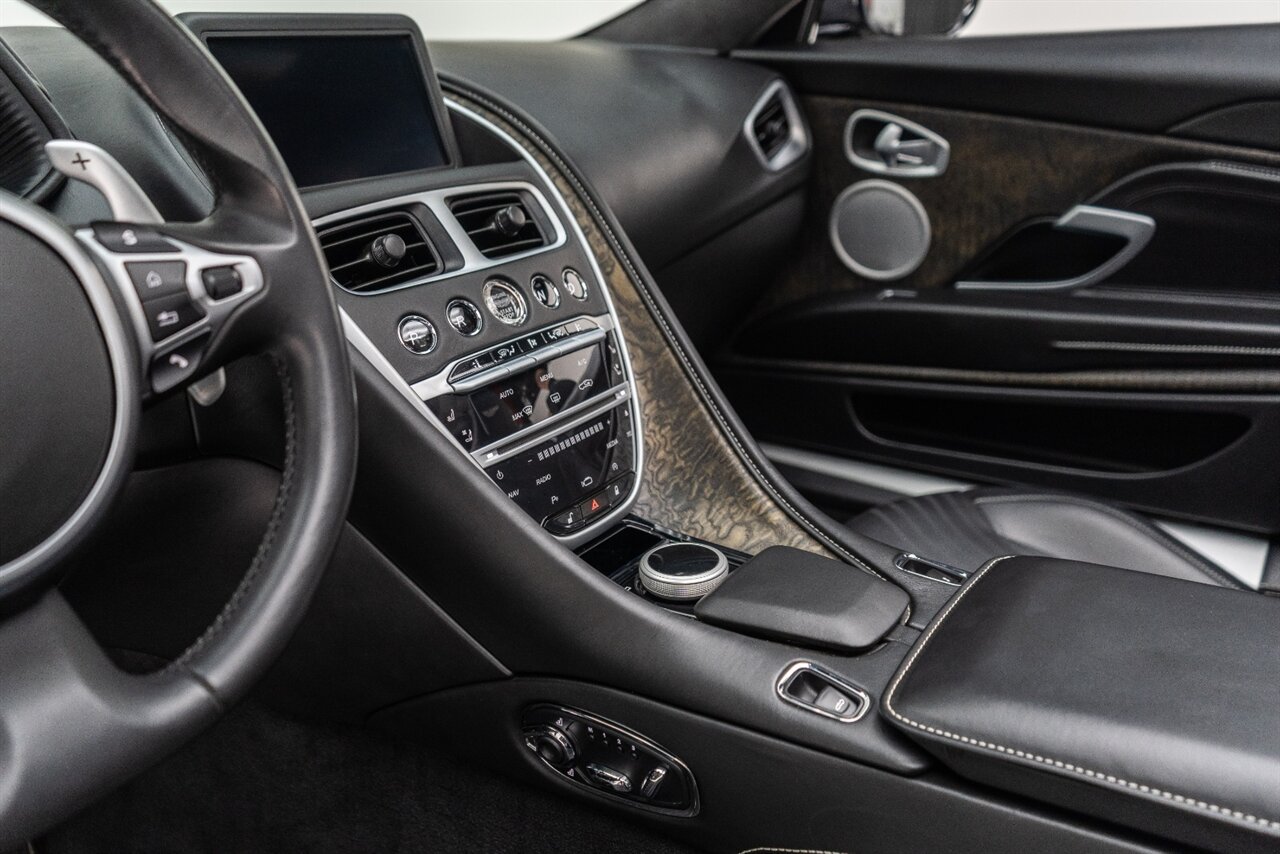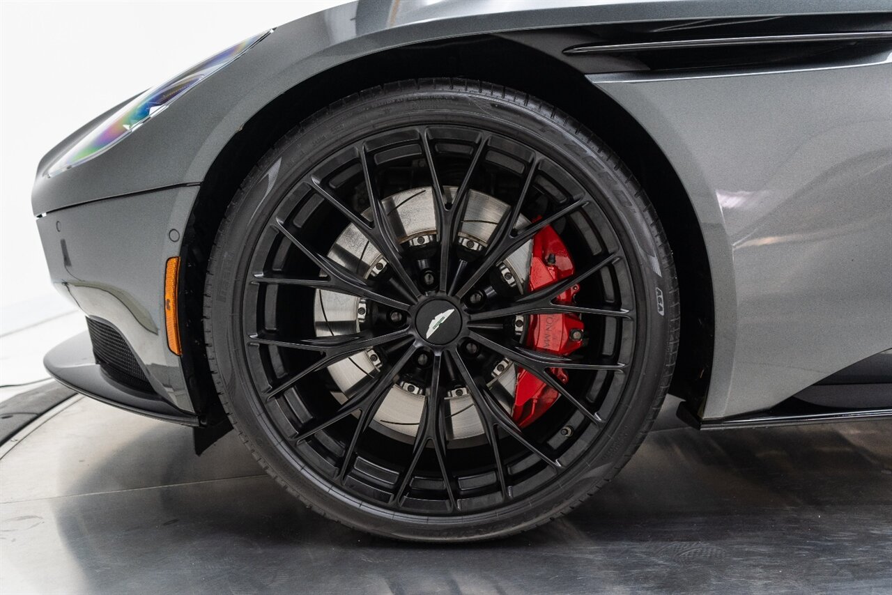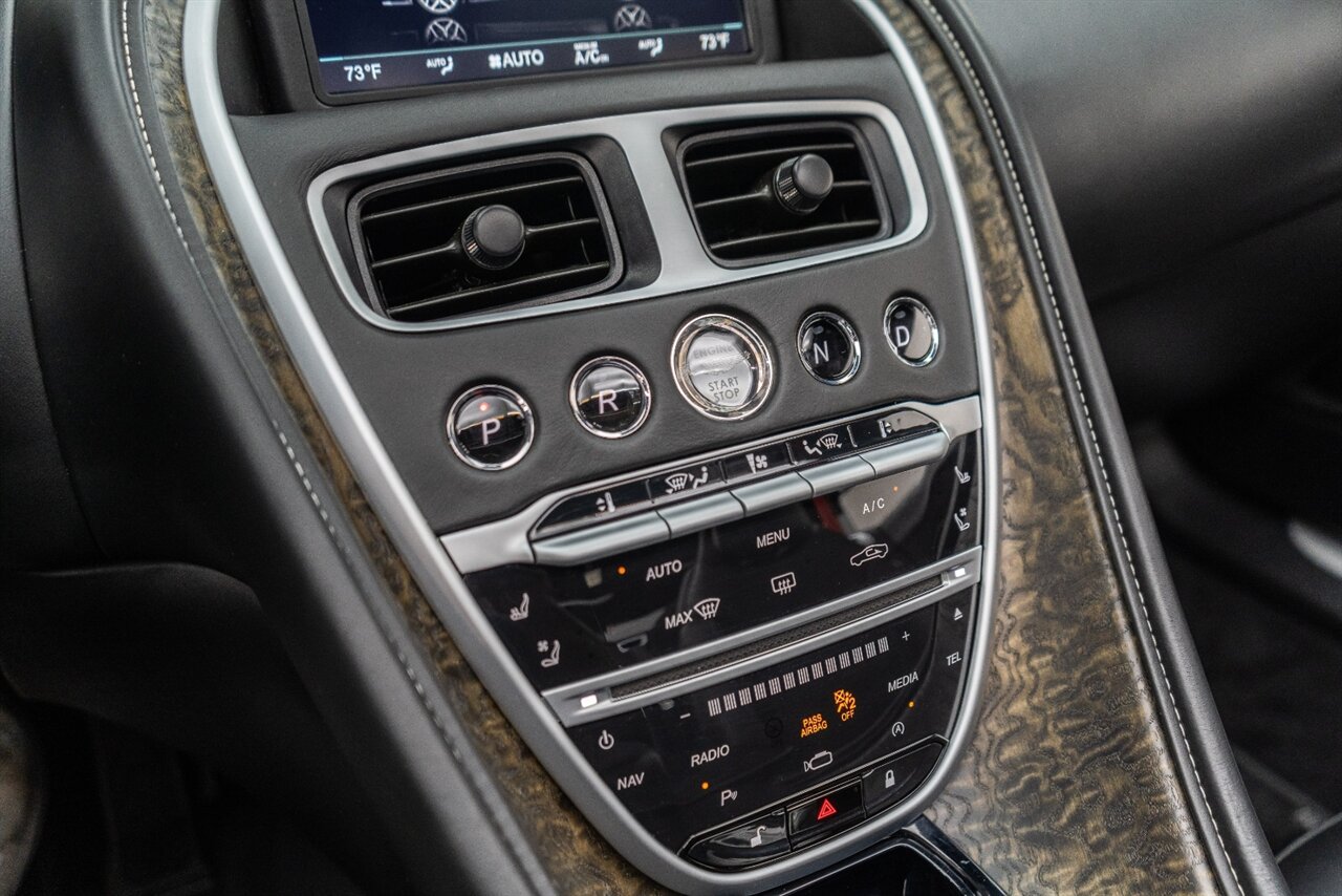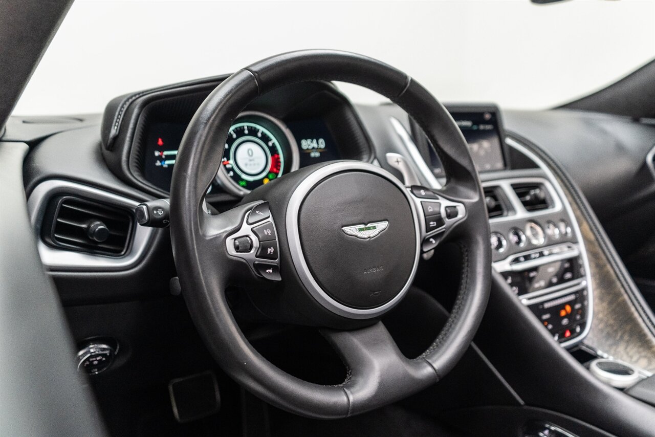 This amazing single owner trade Aston Martin DB11 Volante has impeccable service history and is absolutely the one you have been looking for! Featuring the following factory options: 21" F1 Style black wheels, Power seat bolsters, Red brake calipers, Ventilated front seats, Contrast color stitching, Leather color Contemporary, Headrest Embroidery Aston Martin Wings, Floor mats, Exterior Black package, Trim inlay Tamo Ash Dyed Open Pore. Enjoy this freshly serviced, stunning example of a DB11 today!