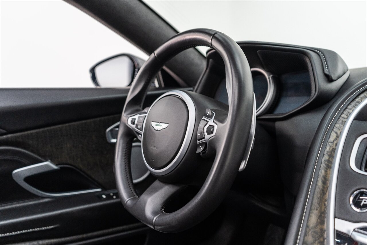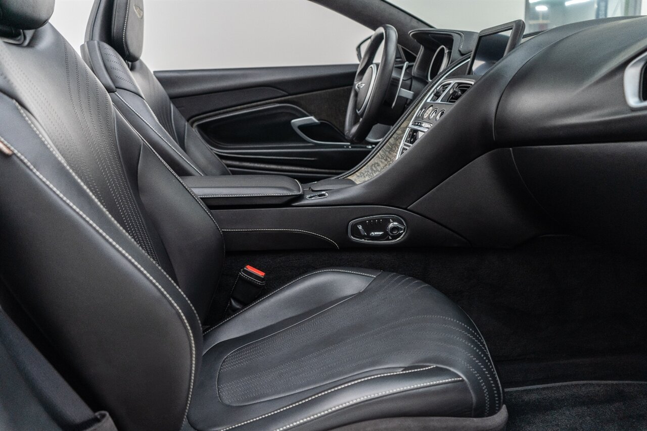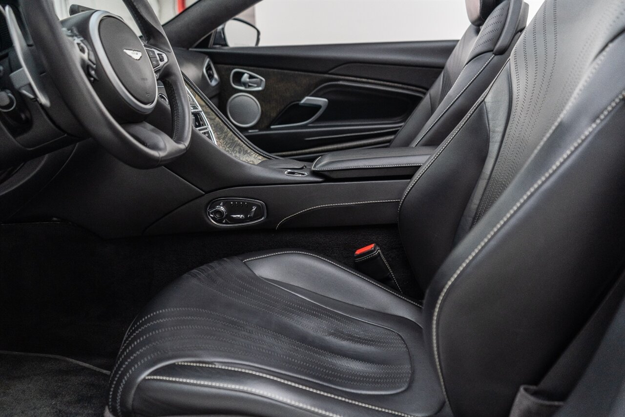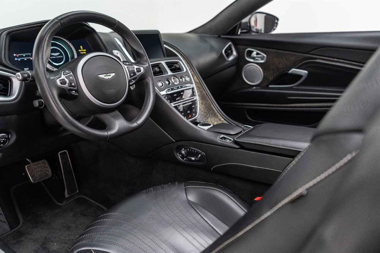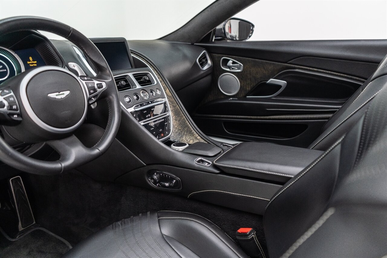 This amazing single owner trade Aston Martin DB11 Volante has impeccable service history and is absolutely the one you have been looking for! Featuring the following factory options: 21" F1 Style black wheels, Power seat bolsters, Red brake calipers, Ventilated front seats, Contrast color stitching, Leather color Contemporary, Headrest Embroidery Aston Martin Wings, Floor mats, Exterior Black package, Trim inlay Tamo Ash Dyed Open Pore. Enjoy this freshly serviced, stunning example of a DB11 today!