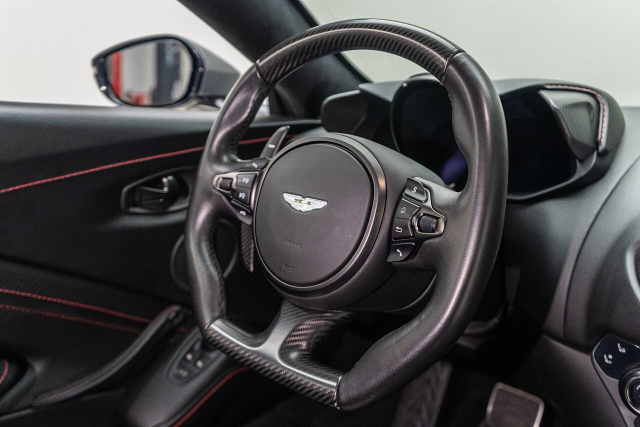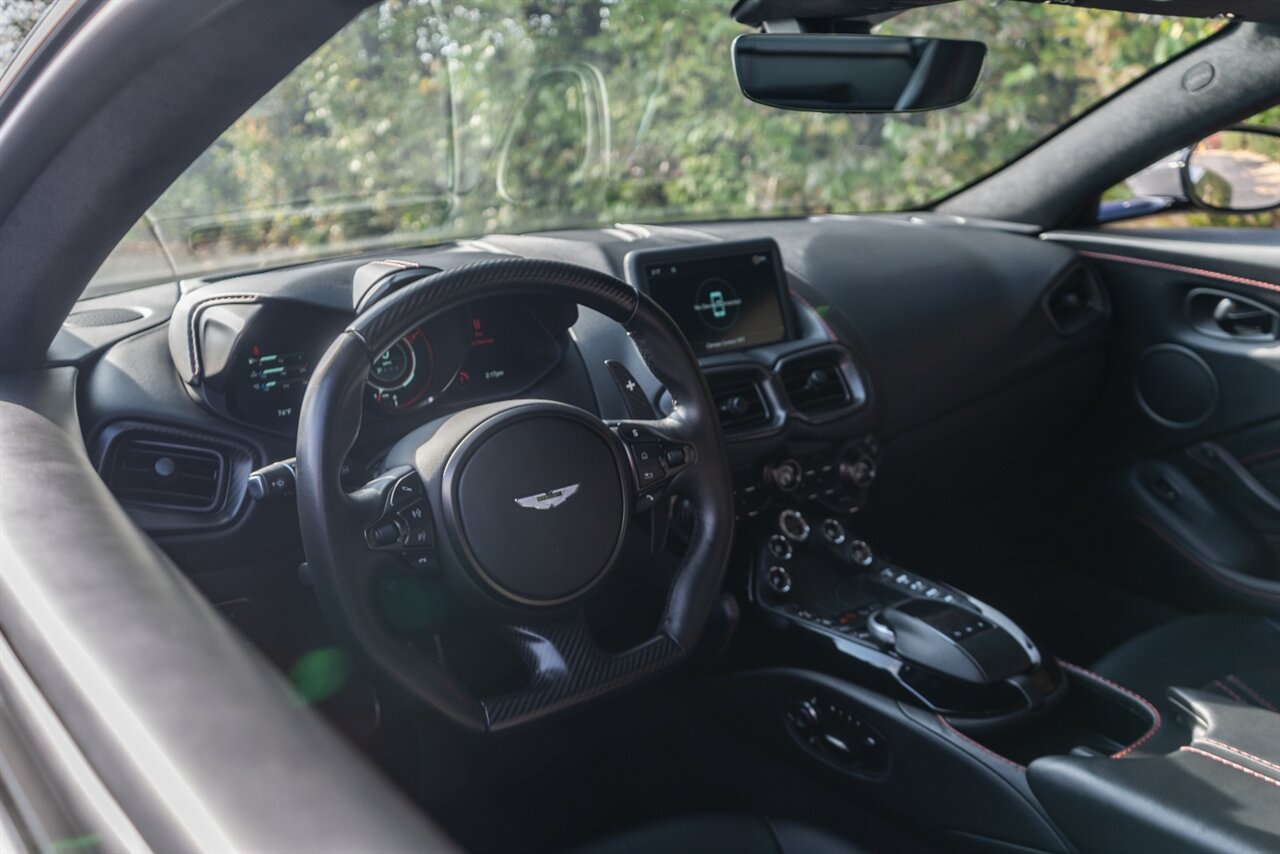 The amazing Aston Martin Vantage is full of power and technology! This beautiful example comes with the following factory options: Aston martin Premium audio, Red brake calipers, body pack in black, comfort collection, technology collection, ventilated seats, stitching contrast color, exterior black collection, leather color Contemporary, paint Contemporary, carbon treadplates, headrests Aston Martin wings, Great Brittain fender badge, Black hood mesh, rear diffuser inserts, seat belts Spice red, Dark Chrome satin carbon interior pack, smoked rear lamps, 20" gloss black forged wheels. Enjoy this AMAZING Vantage today!