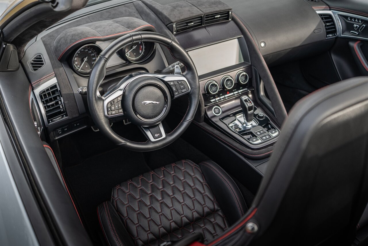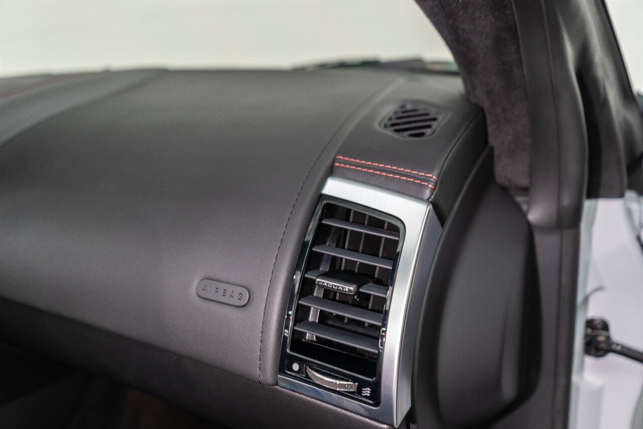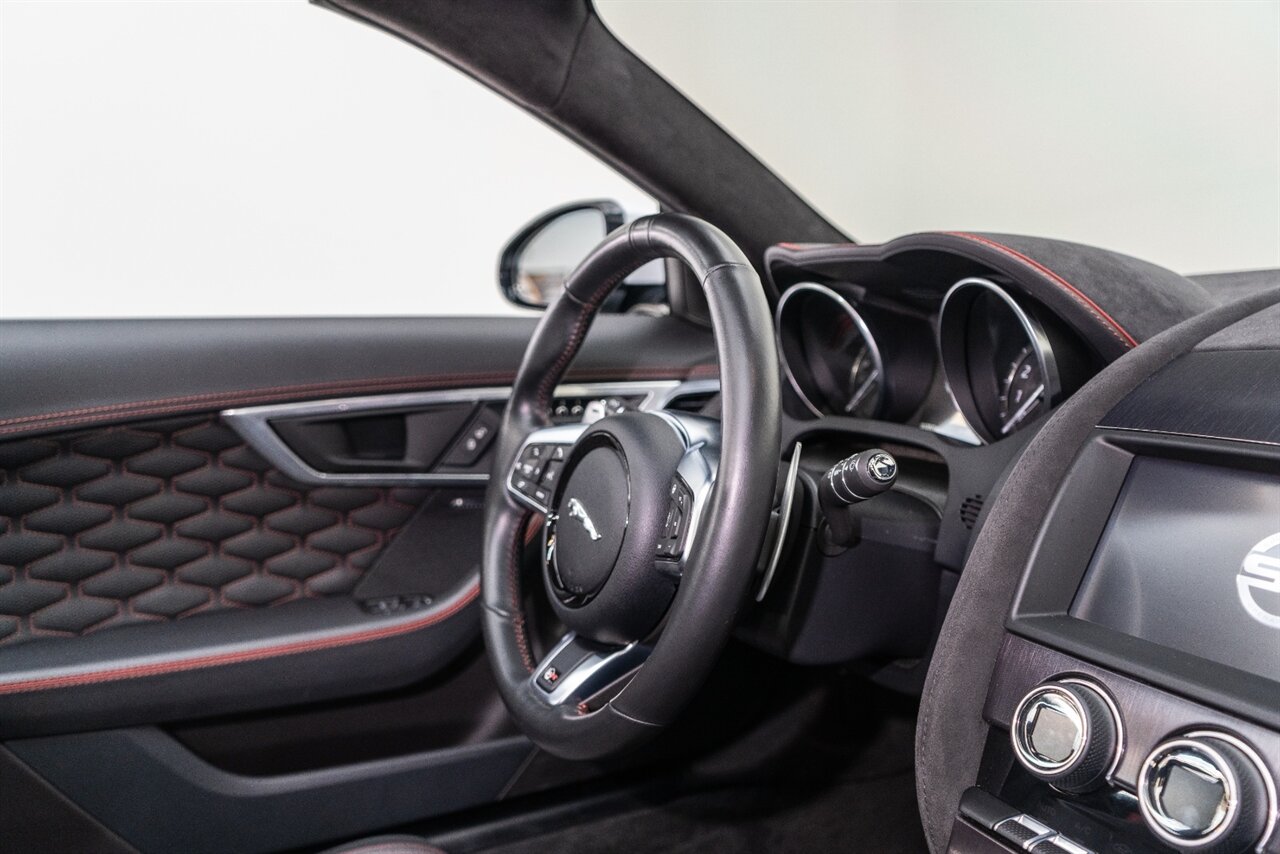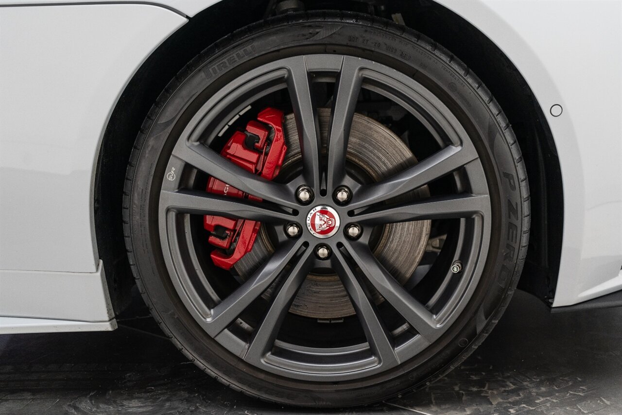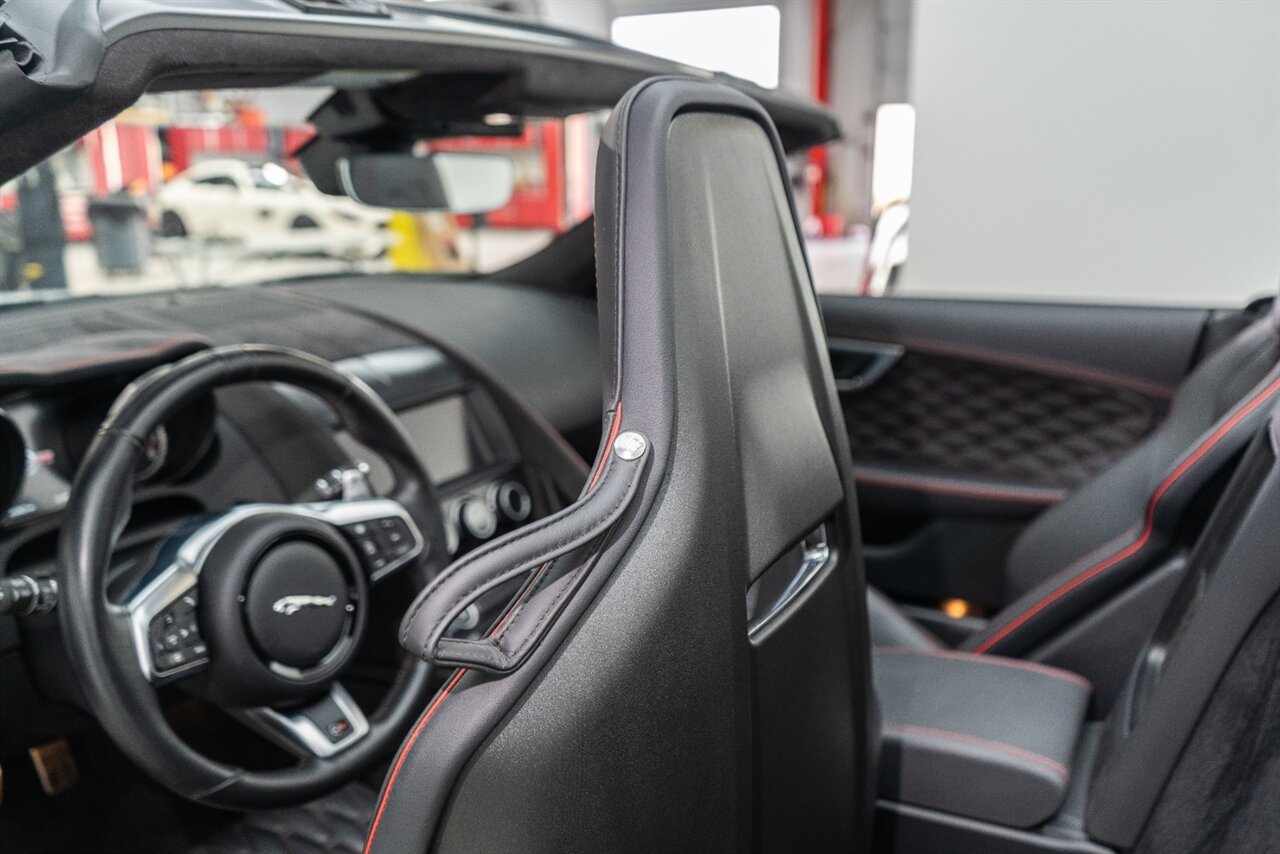 There is something about a supercharged V8 that gets your blood flowing! This Jaguar SVR convertible does not disappoint! 575HP gets delivered through the smooth 8 spd auto transmission. Enjoy teh 770 W Merdian sound system upgrade, red seat belts to match your red stitching, park assist, blind spot assist, rear traffic monitor and homelink garage door butttons round out the factory options. We have just fully serviced and replaced all 4 tires in our state-of-art service facility. This SVR Jaguar is ready to be enjoyed!