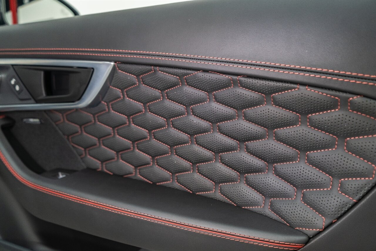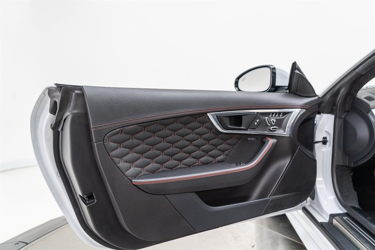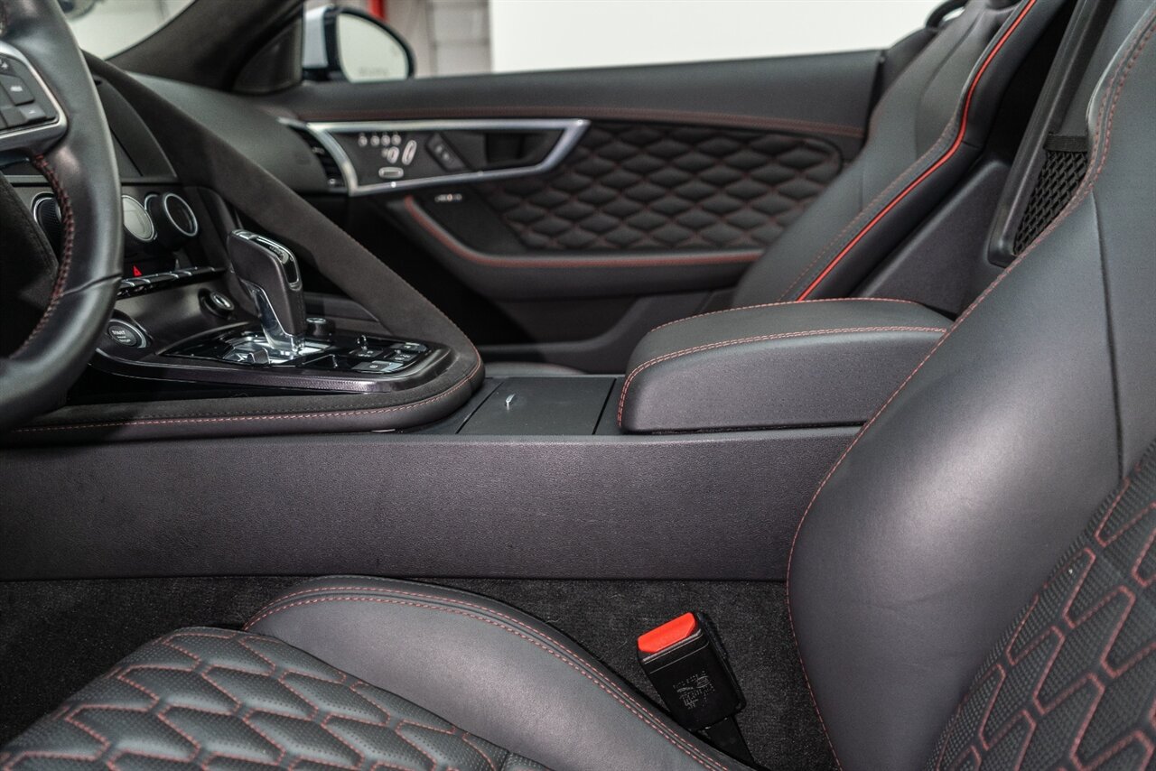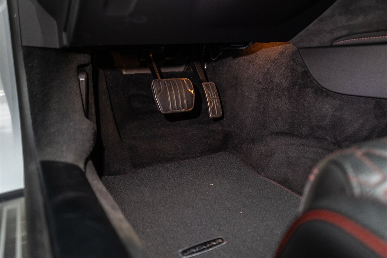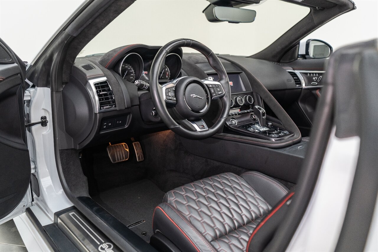 There is something about a supercharged V8 that gets your blood flowing! This Jaguar SVR convertible does not disappoint! 575HP gets delivered through the smooth 8 spd auto transmission. Enjoy teh 770 W Merdian sound system upgrade, red seat belts to match your red stitching, park assist, blind spot assist, rear traffic monitor and homelink garage door butttons round out the factory options. We have just fully serviced and replaced all 4 tires in our state-of-art service facility. This SVR Jaguar is ready to be enjoyed!