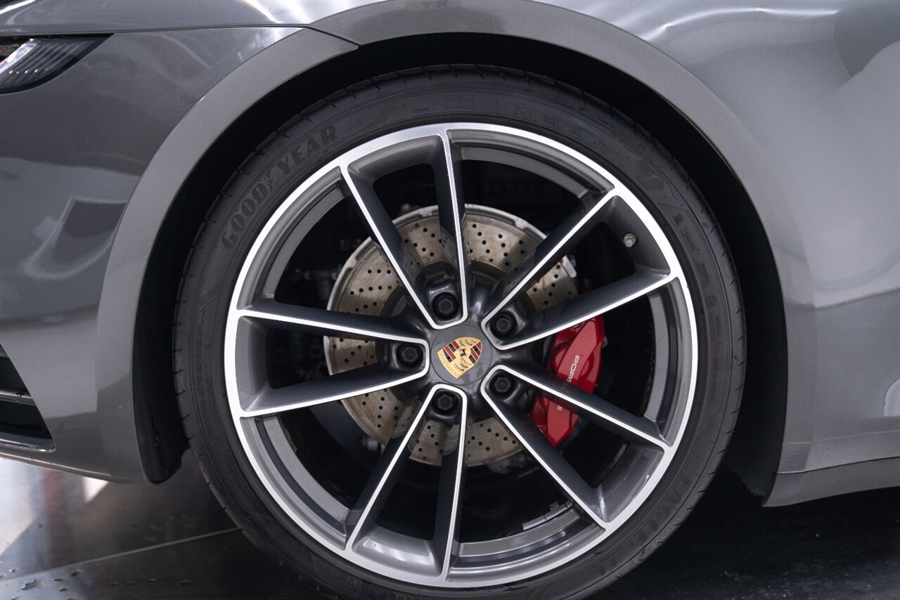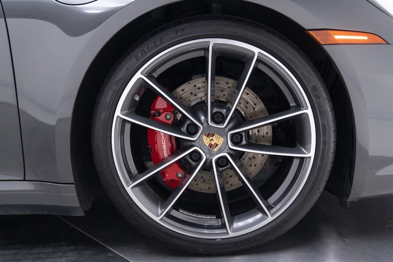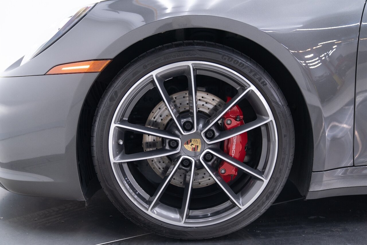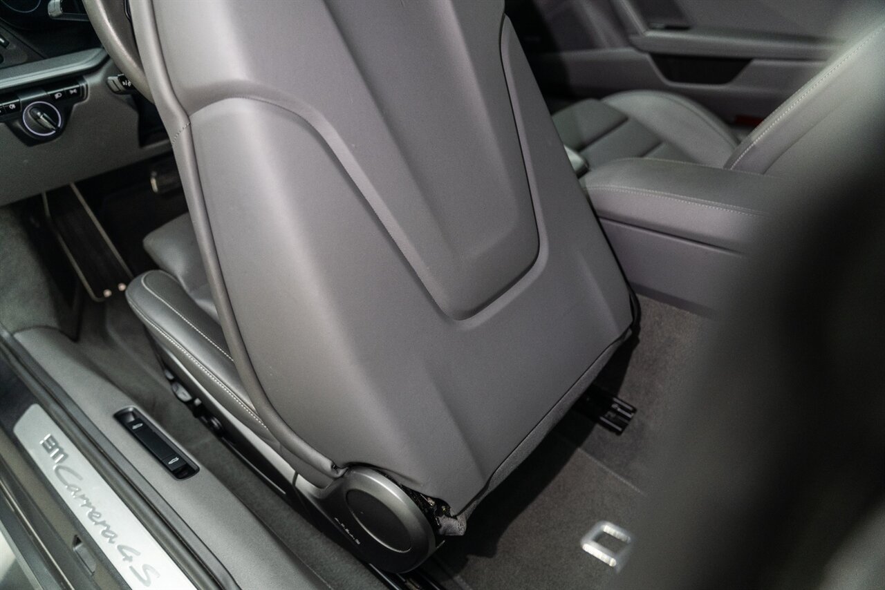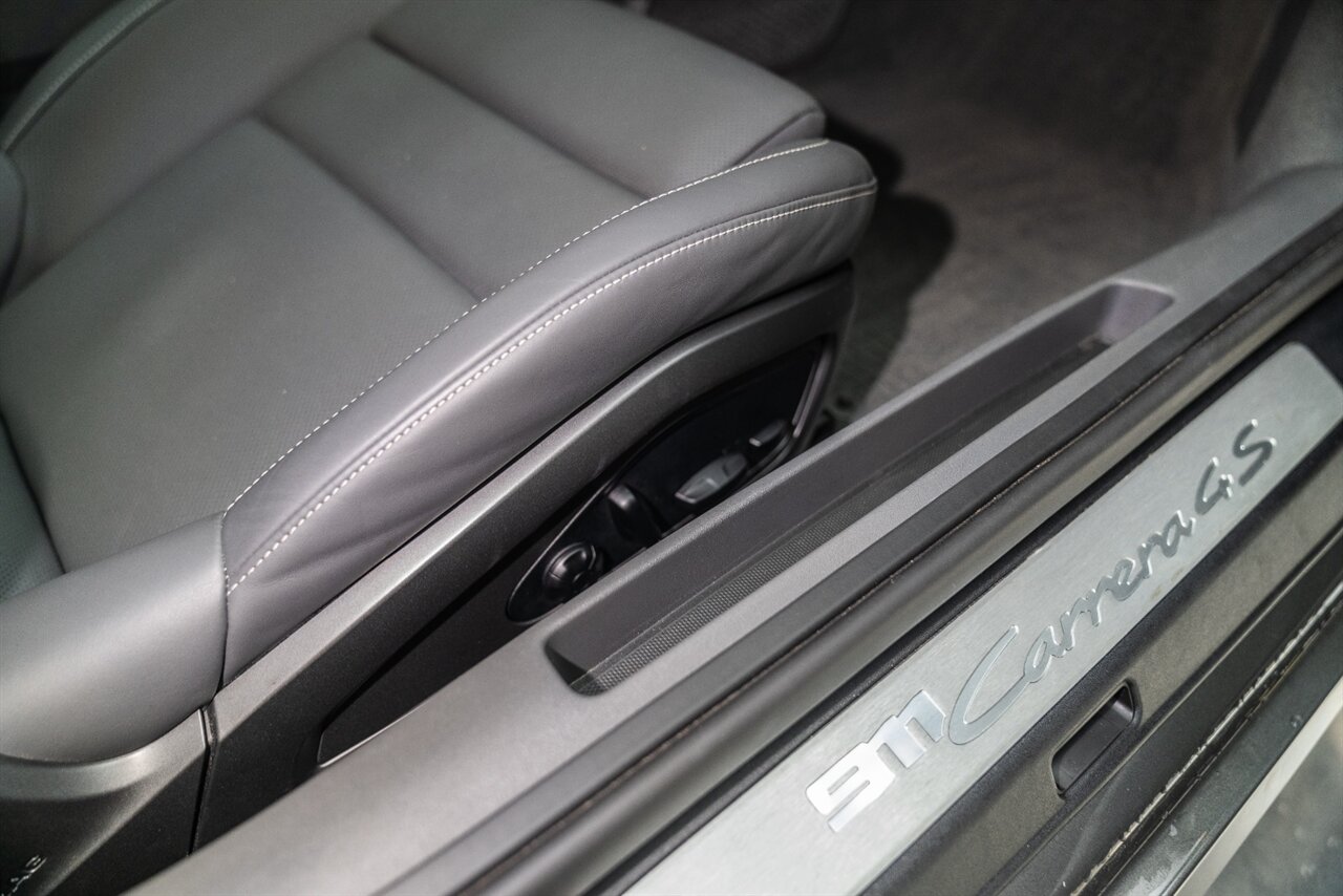 The amazing 911 Carrera 4S coupe showcased here is just a single owner trade in with ALL SERVICE RECORDS since new. Such a rare find! Loaded with the following factory options: Agate Grey metallic, Full leather interior Slate grey with chalk stitching, Rear Axle steering, wheel center caps colored crest, Electric tilt and slide moonroof, heated GT steering wheel, 20"/21" Carrera Classic wheels, 14 way power seats with memory package, Sport Package (Sport Chrono, Sport Exhaust, PASM Suspension), Premium package (Surround view camera, Ventilated seats front, power folding mirrors, BOSE surround sound, ambient lighting, Lance change assist), LED matrix headlamps with PDLS. Freshly serviced and ready for you this Carrera 4S is the one!