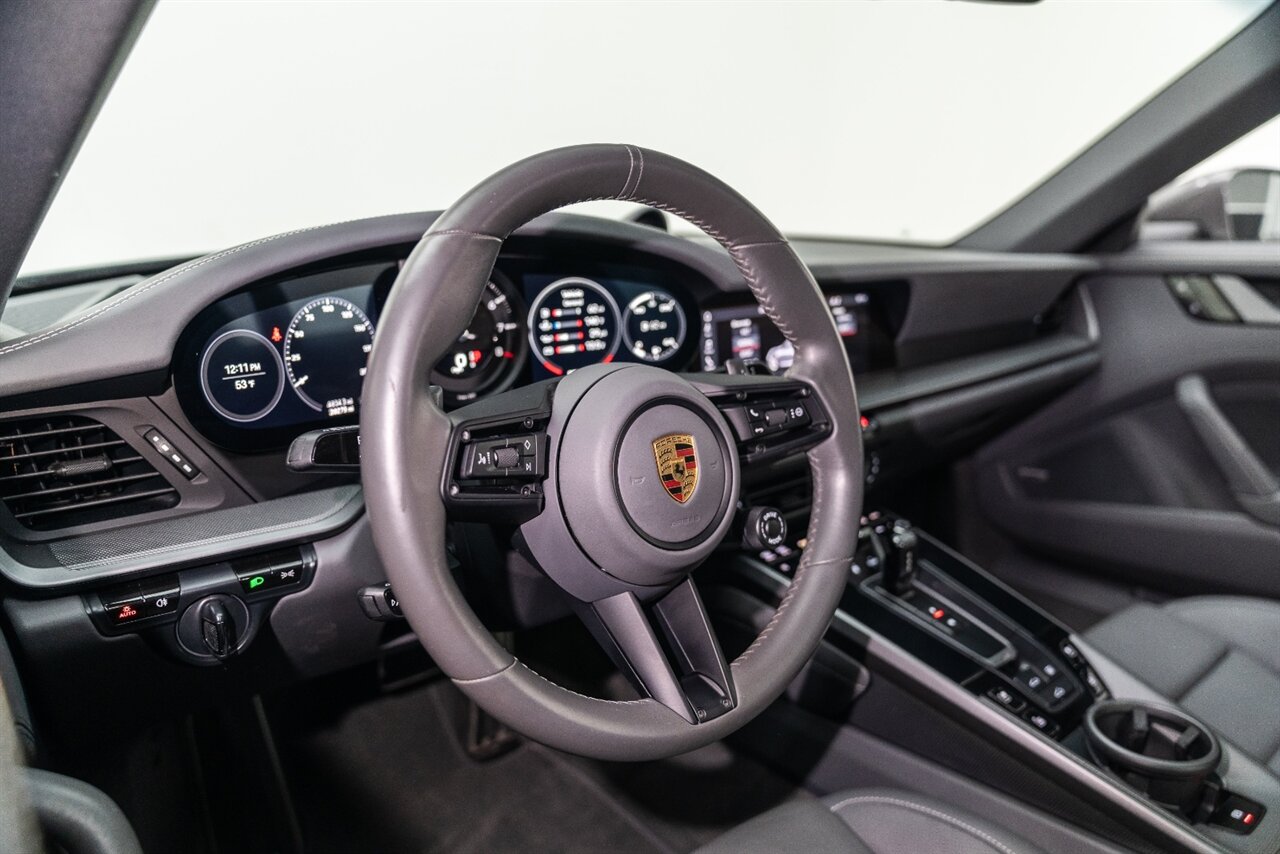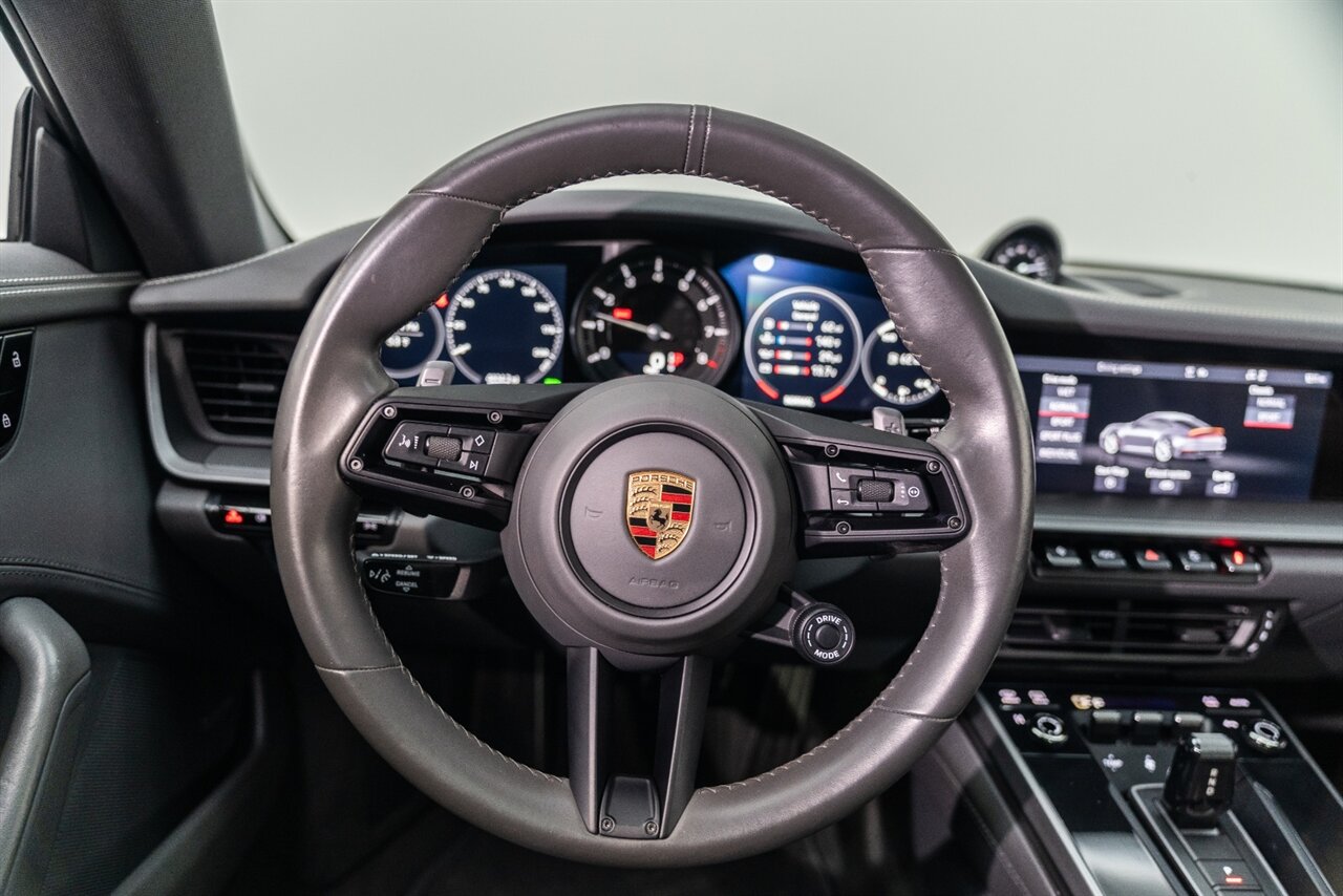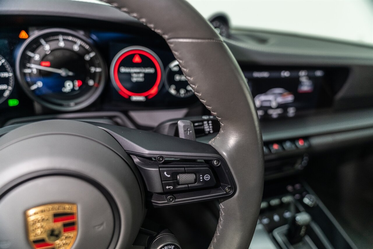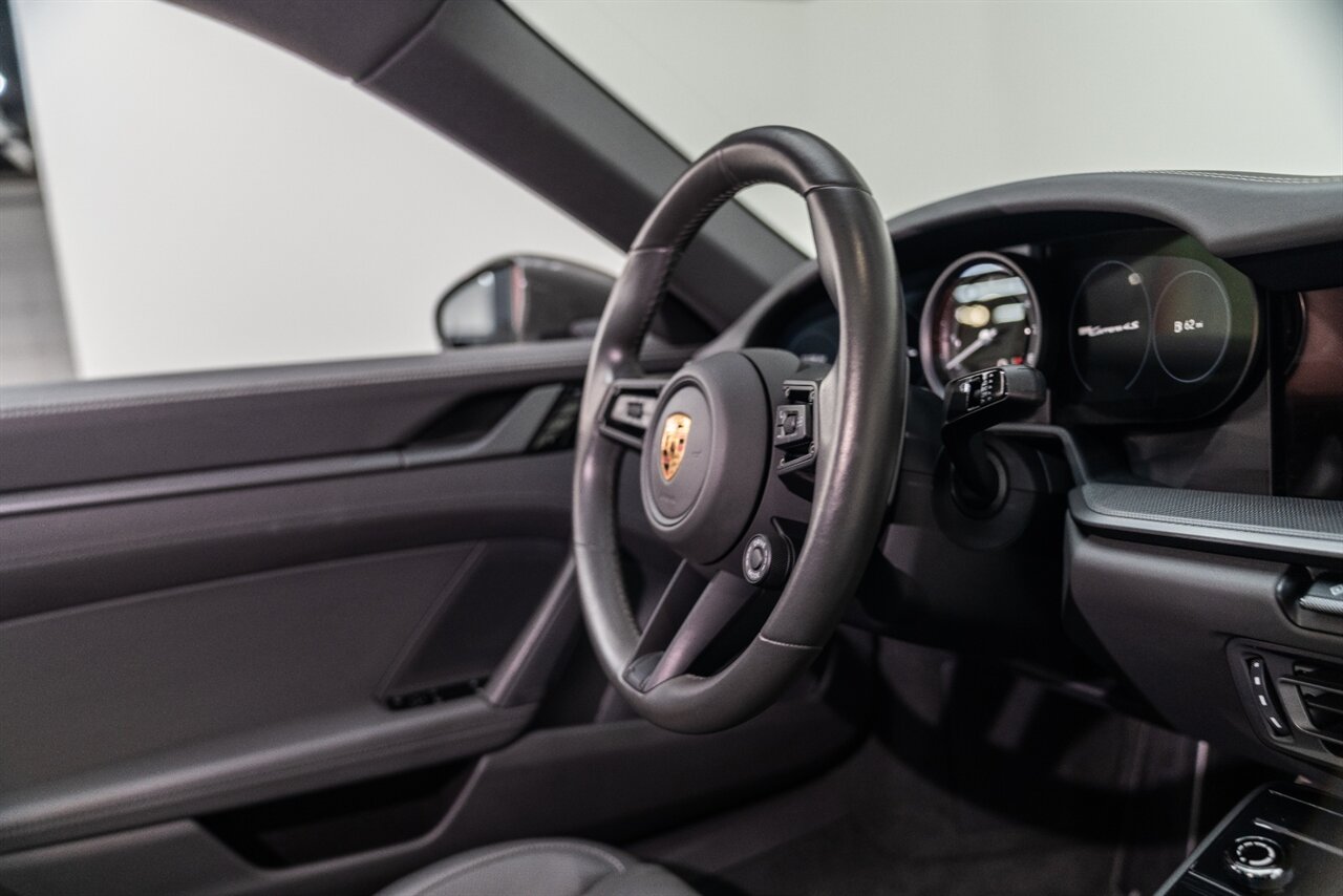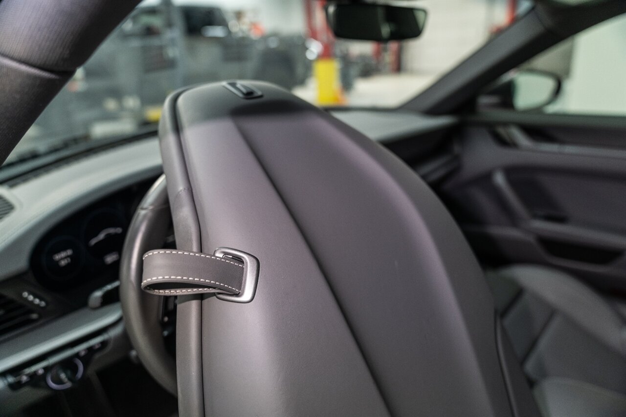 The amazing 911 Carrera 4S coupe showcased here is just a single owner trade in with ALL SERVICE RECORDS since new. Such a rare find! Loaded with the following factory options: Agate Grey metallic, Full leather interior Slate grey with chalk stitching, Rear Axle steering, wheel center caps colored crest, Electric tilt and slide moonroof, heated GT steering wheel, 20"/21" Carrera Classic wheels, 14 way power seats with memory package, Sport Package (Sport Chrono, Sport Exhaust, PASM Suspension), Premium package (Surround view camera, Ventilated seats front, power folding mirrors, BOSE surround sound, ambient lighting, Lance change assist), LED matrix headlamps with PDLS. Freshly serviced and ready for you this Carrera 4S is the one!