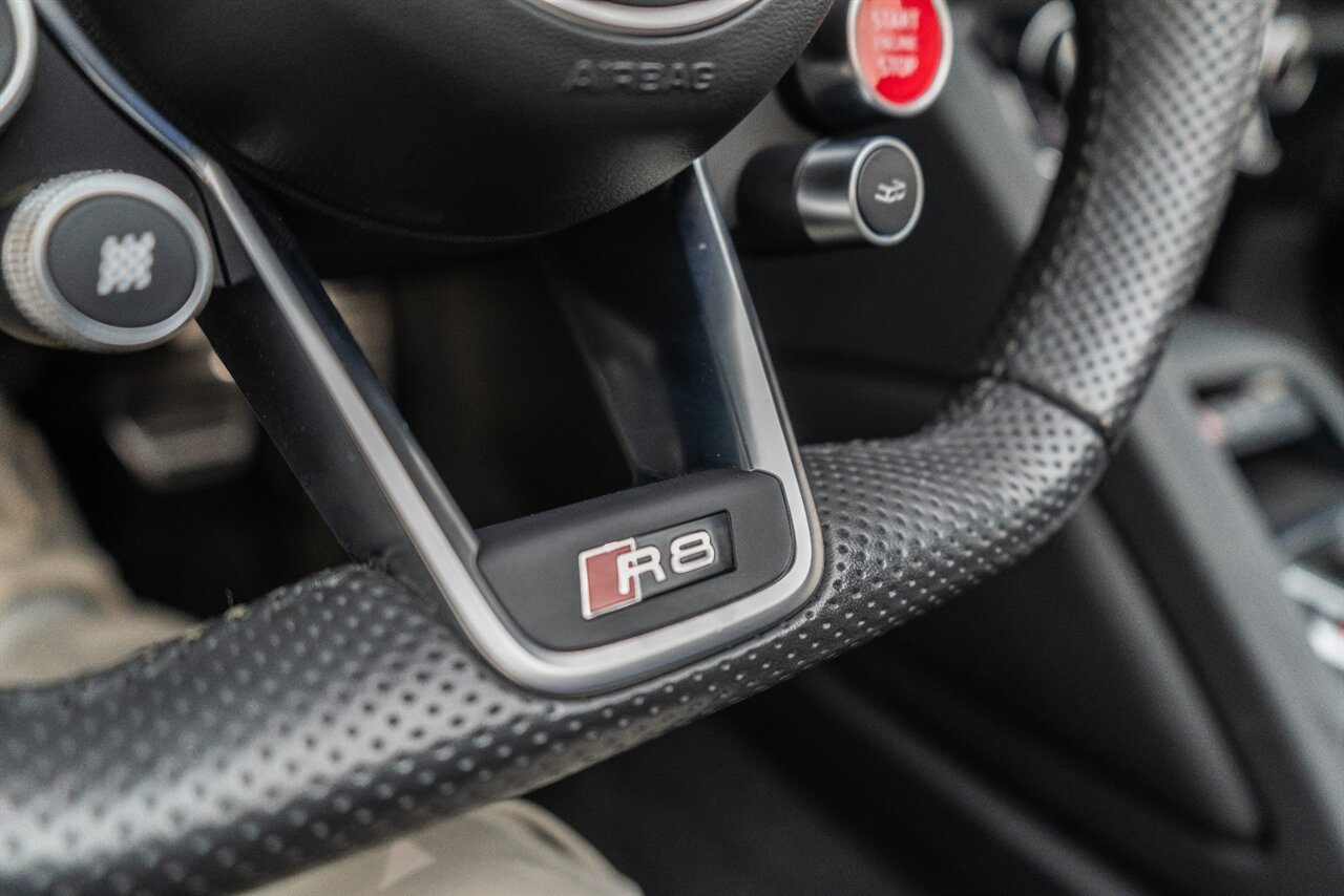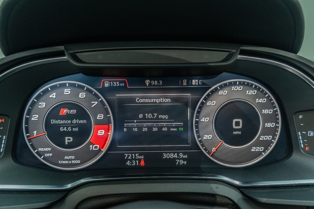 The Audi R8 is an amazing supercar featuring the rock solid V10! This Suzuka Grey Performance Spider feature the following factory options: Sport Exhaust Package (Audi Drive Select with Performance mode, Sport steering wheel with 4 satellite buttons, Sport Exhaust system with black tips), Red Brake Calipers. Freshly serviced and ready for you to enjoy, get ready to hear the roar of the mighty V10!
