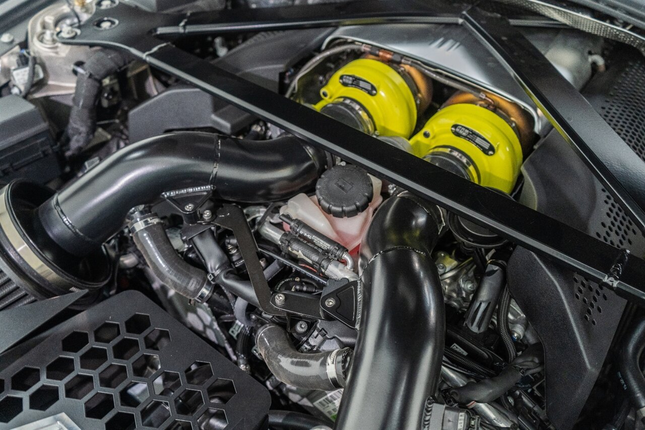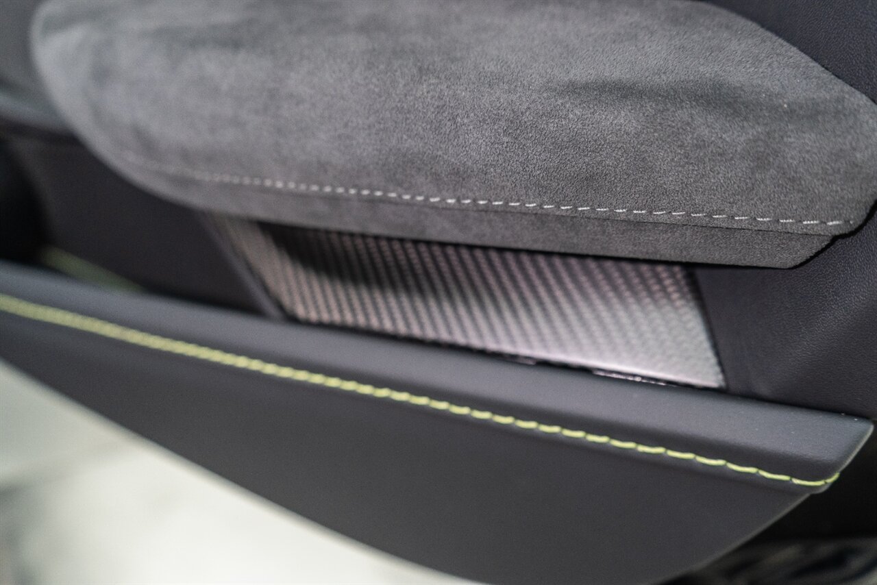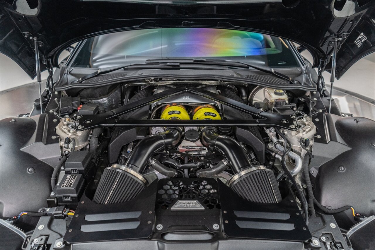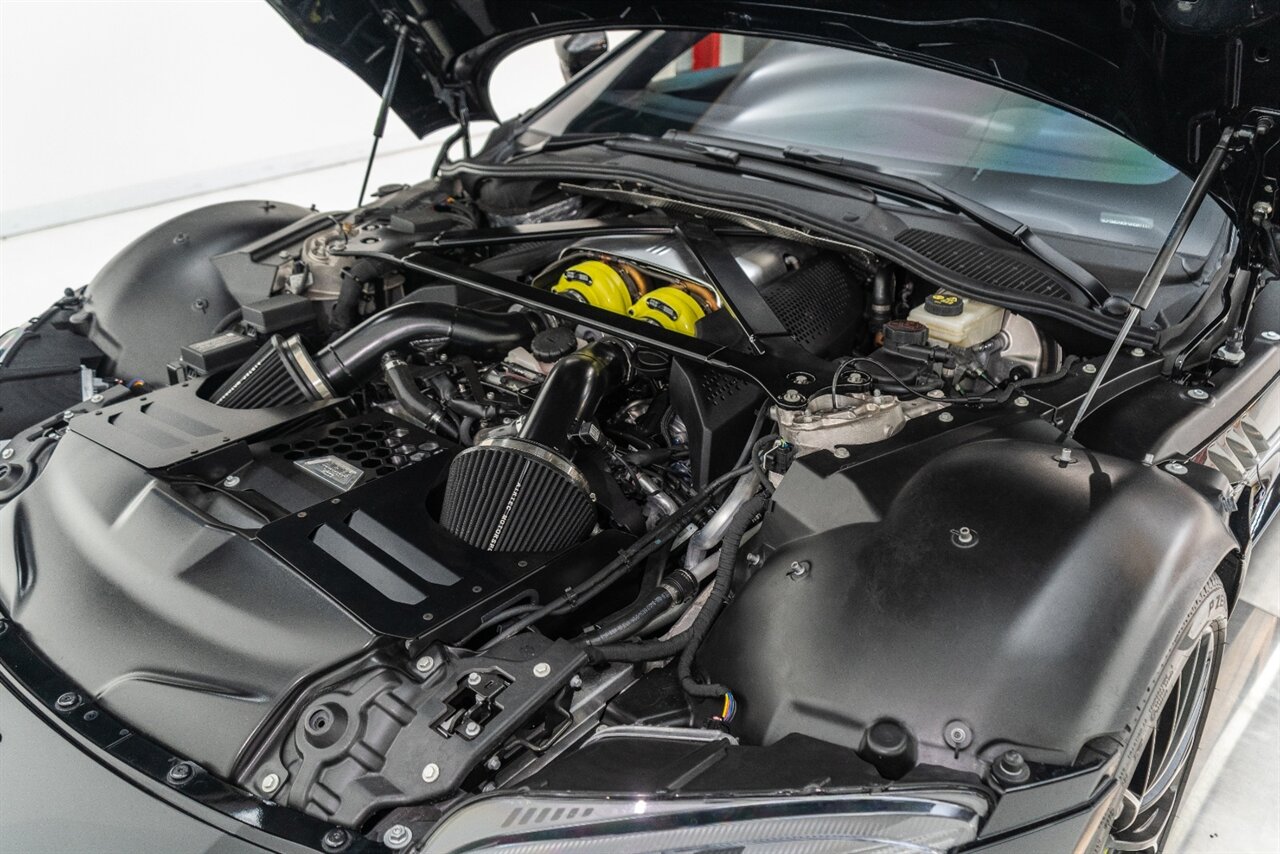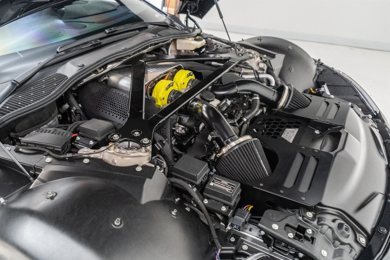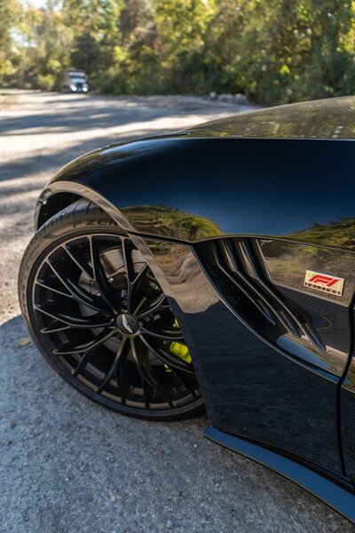 The Aston Martin F1 is a very special car indeed! Much more aggressive aero vs. the standard Vantage model, larger rear wing, dive panes, splitter and underbody tuning vanes. The suspension of the F1 is stiffer than the standard Vantage yielding to better handling, larger 21" wheels. Tons of standard exterior carbon fiber! This F1 Vantage also received Velocity AP downpipes, PTG 1000 series turbos, Airtec intake, KW adjustable lowering springs. This beast puts down 800+ HP AT THE WHEELS! Yet drives like a "normal" Vantage when you're inclined. This is the Vantage you've been looking for!