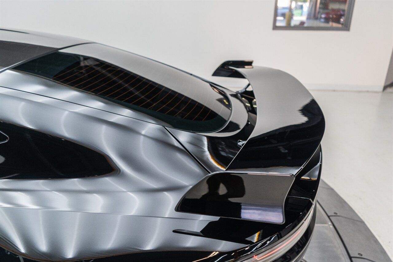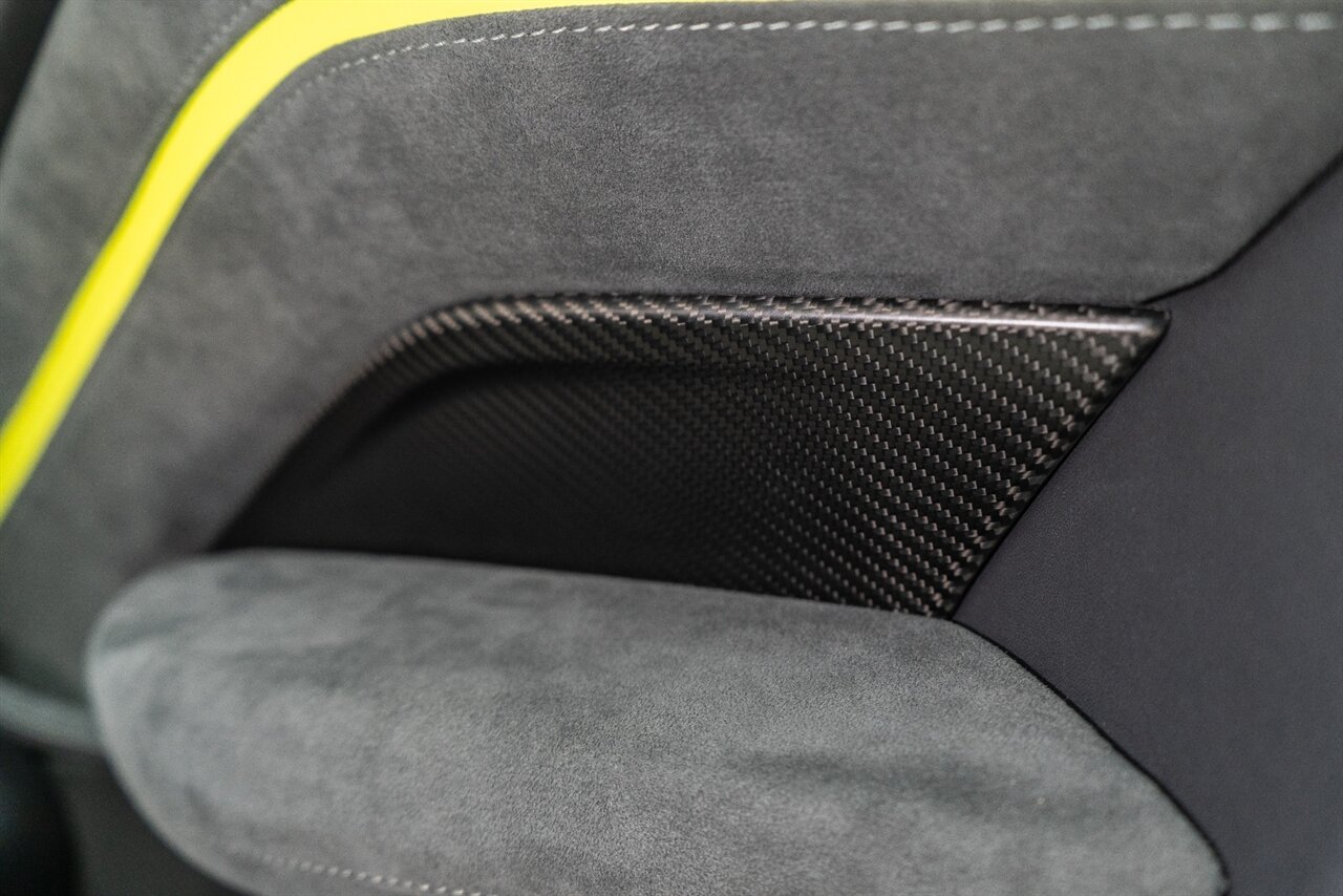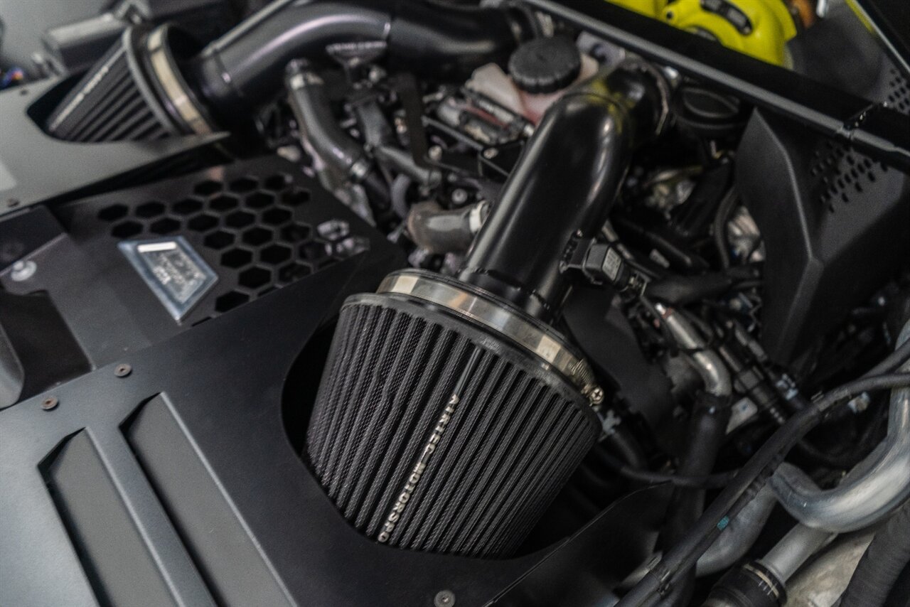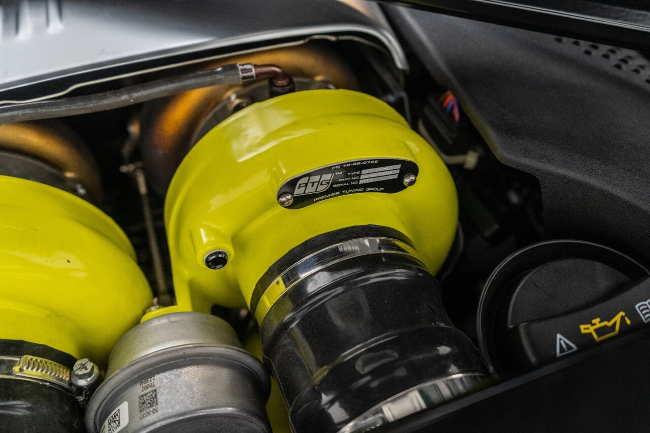 The Aston Martin F1 is a very special car indeed! Much more aggressive aero vs. the standard Vantage model, larger rear wing, dive panes, splitter and underbody tuning vanes. The suspension of the F1 is stiffer than the standard Vantage yielding to better handling, larger 21" wheels. Tons of standard exterior carbon fiber! This F1 Vantage also received Velocity AP downpipes, PTG 1000 series turbos, Airtec intake, KW adjustable lowering springs. This beast puts down 800+ HP AT THE WHEELS! Yet drives like a "normal" Vantage when you're inclined. This is the Vantage you've been looking for!