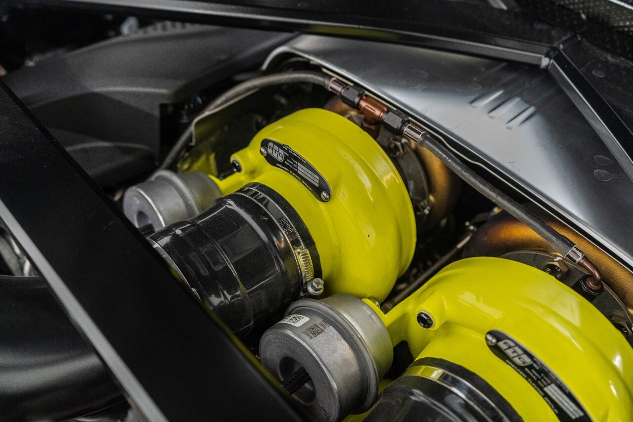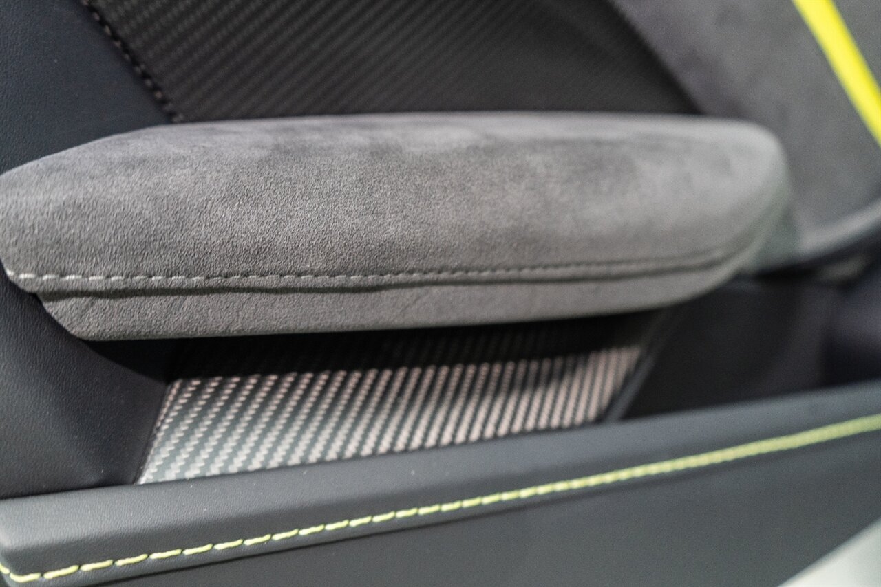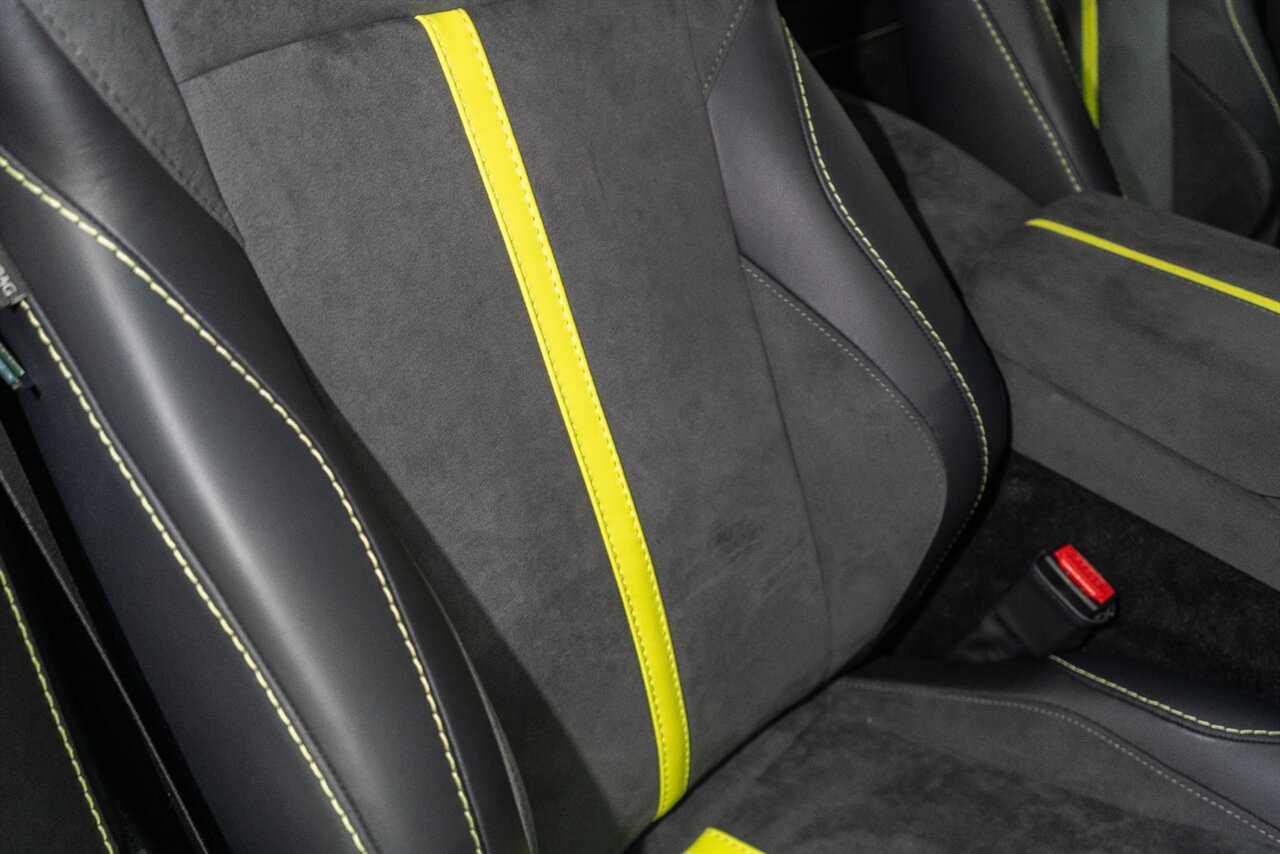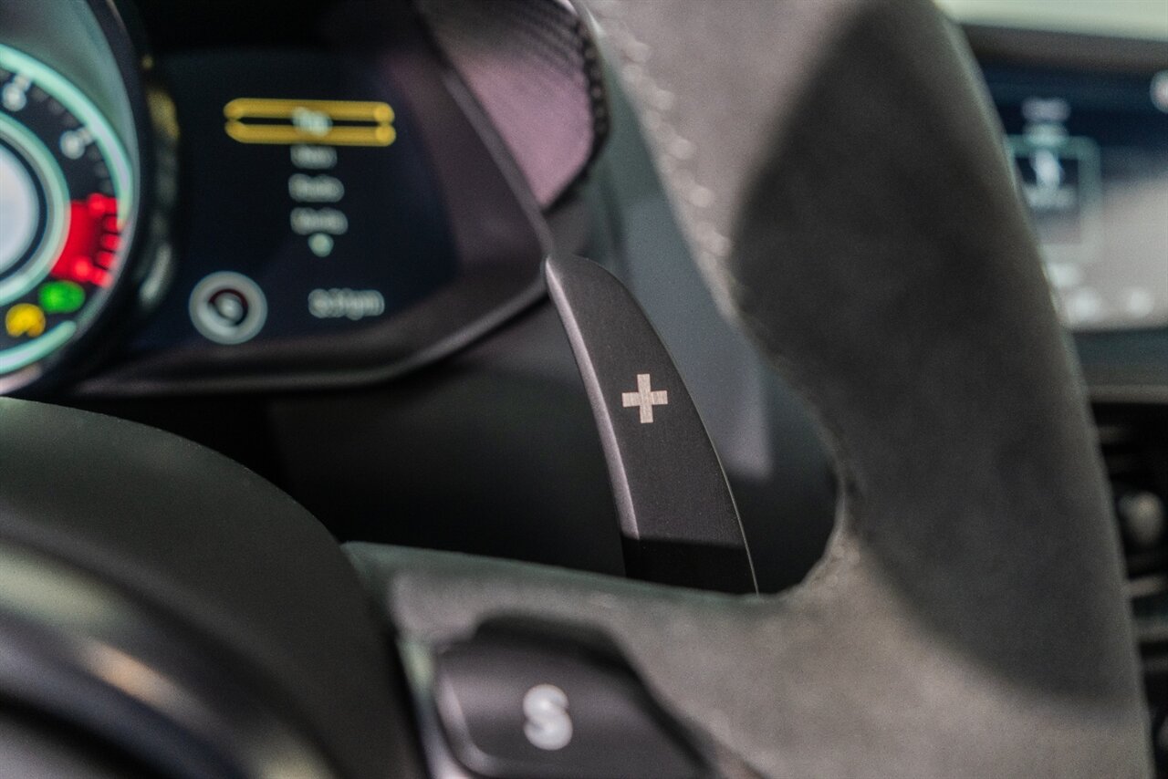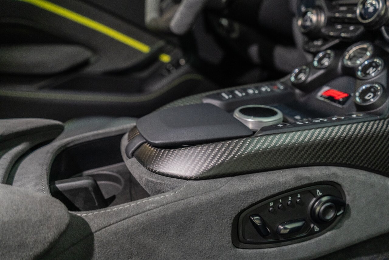 The Aston Martin F1 is a very special car indeed! Much more aggressive aero vs. the standard Vantage model, larger rear wing, dive panes, splitter and underbody tuning vanes. The suspension of the F1 is stiffer than the standard Vantage yielding to better handling, larger 21" wheels. Tons of standard exterior carbon fiber! This F1 Vantage also received Velocity AP downpipes, PTG 1000 series turbos, Airtec intake, KW adjustable lowering springs. This beast puts down 800+ HP AT THE WHEELS! Yet drives like a "normal" Vantage when you're inclined. This is the Vantage you've been looking for!