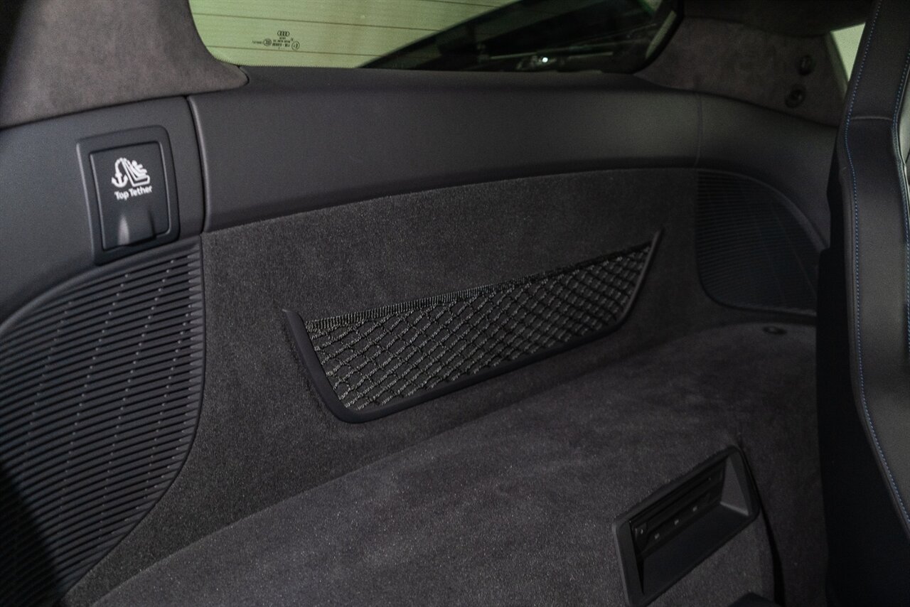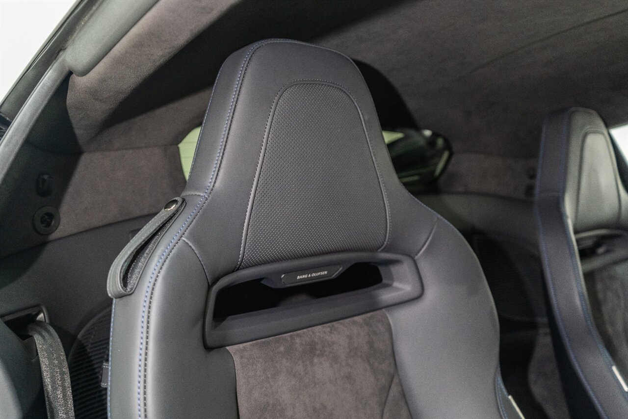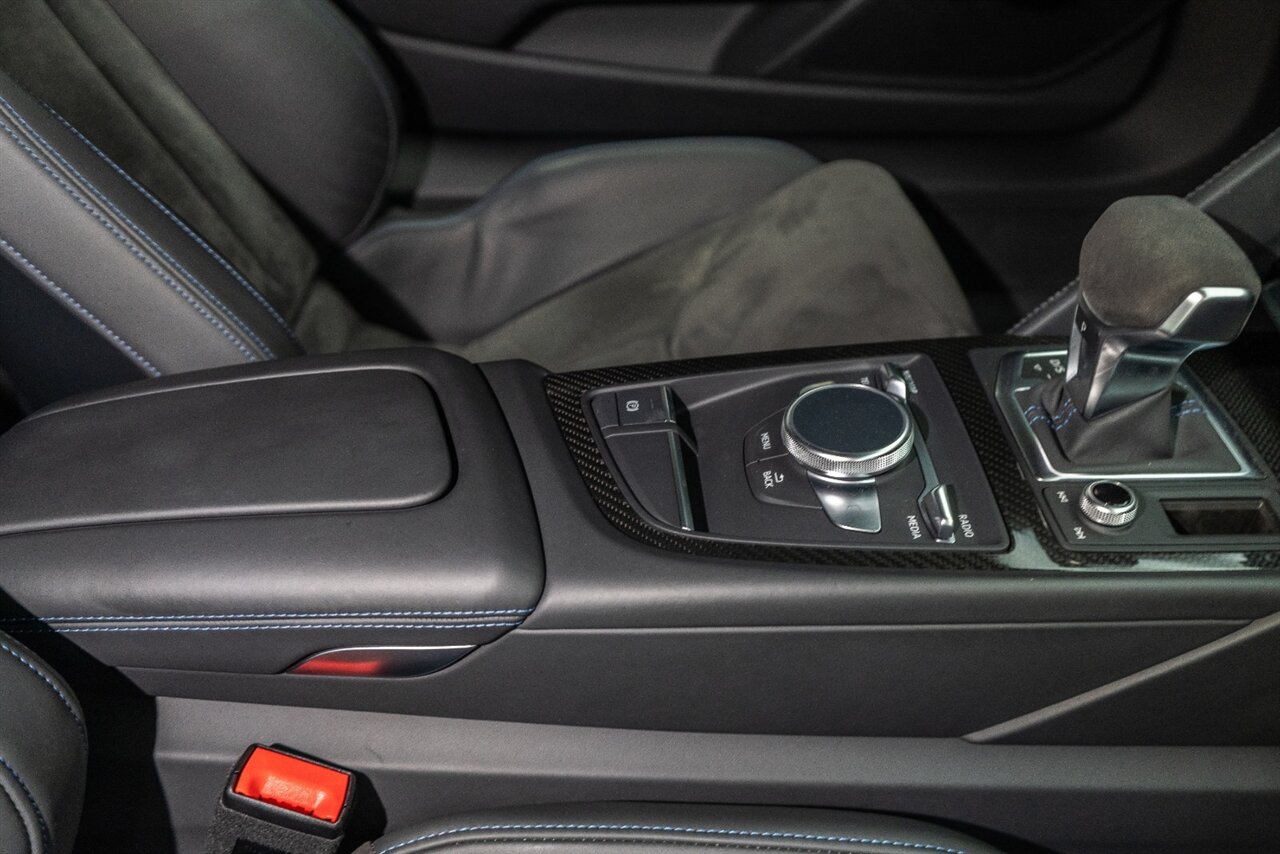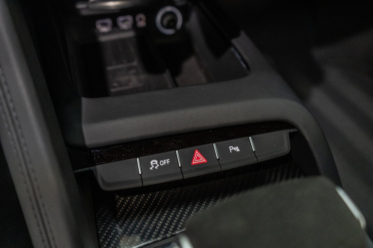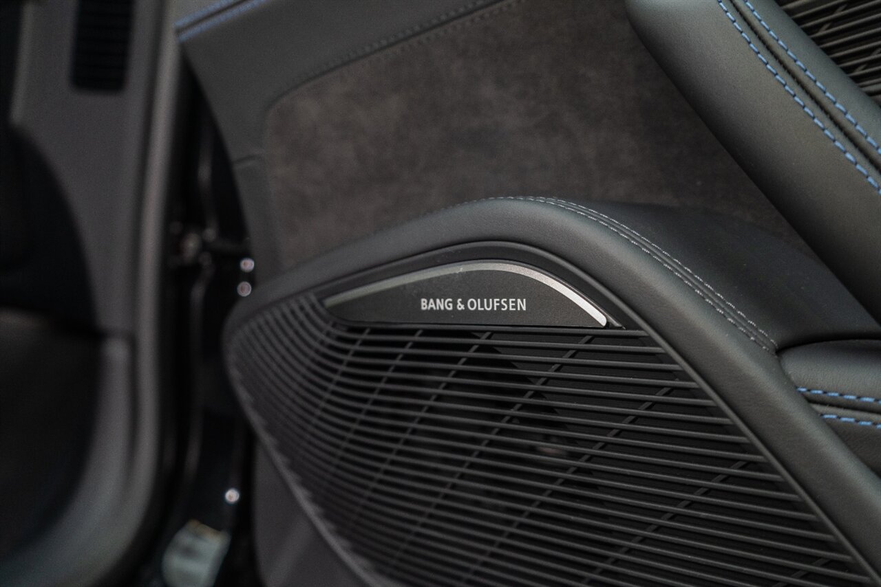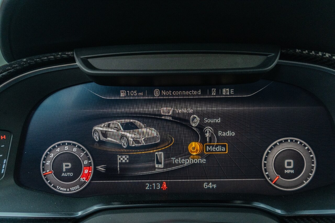 The last of an ERA naturally aspirated V10 Performance Quattro! 602 horsepower revs to the MOON! This freshly serviced and beautiful R8 comes with the following factory options: Mythos Black Metallic Paint, CARBON FIBER FRONT SPOILER, ROCKER INLAY, and EXHAUST SURROUND. R* Performance design package (Alcantara steering wheel, Blue brake calipers, floor mats with blue stitching, gear selector alcantara, Leather/Alcantara seats, BANG AND OLUEFSUN sound system, Dynamic steering, black Audi rings and badges. Enjoy this stunning R8 TODAY!