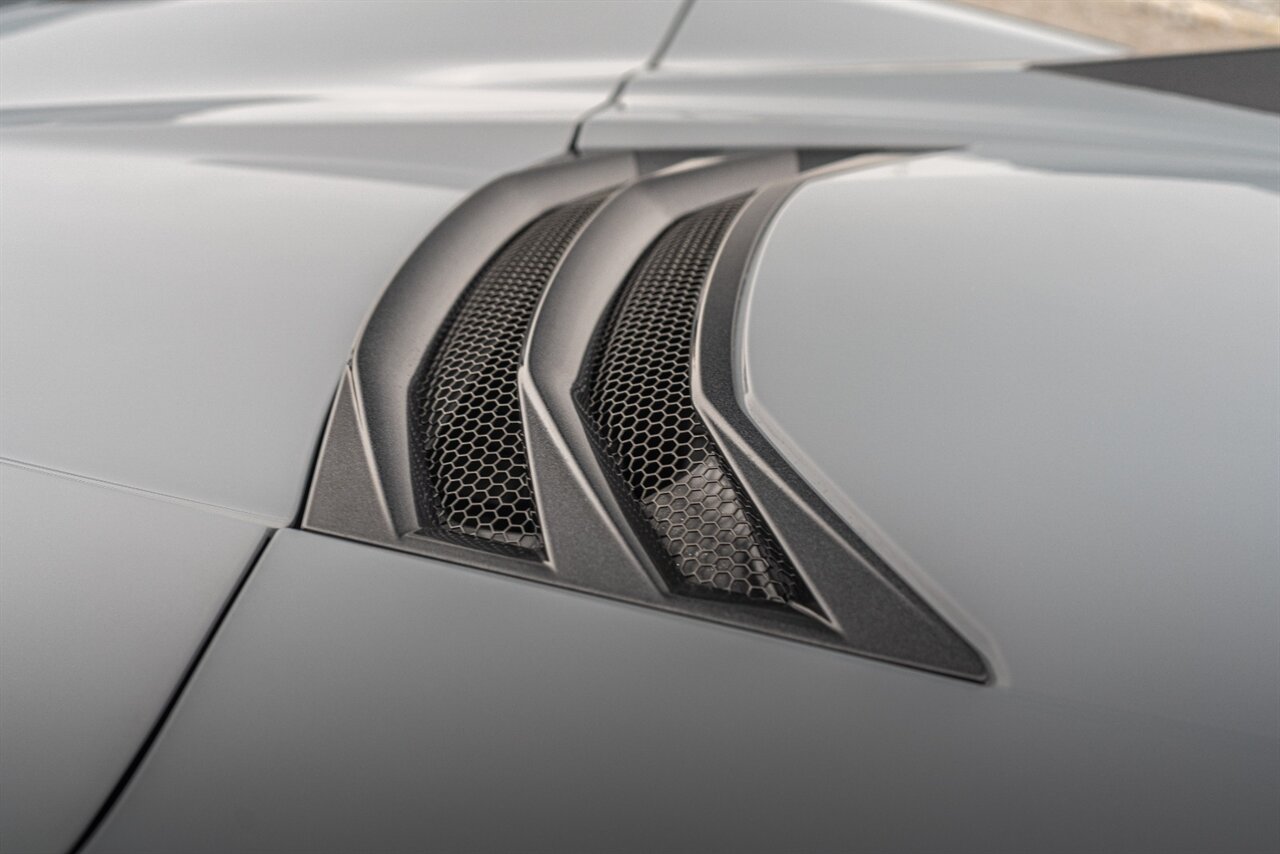 Stunning Sea Wolf Grey with the racing Jake logos POPS! The Z06 is an awesome machine and when the top goes down by itself it makes it that much better! Factory options include: Front suspension lifter, GT2 bucket seats, Carbon Flash painted Nacelles and roof, Sea Wolf grey tricoat paint, Scrape armor grille, bright red painted brake calipers, Jake hood decal, Jake rear hash graphics. It's the highest horsepower, naturally aspirated motor man has ever created!