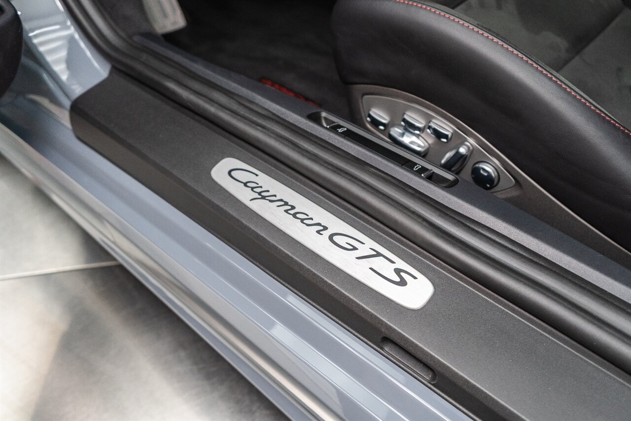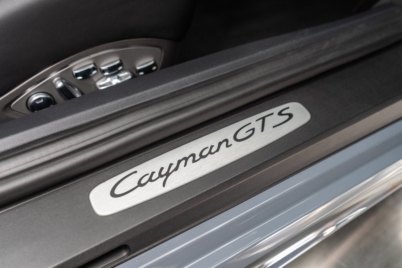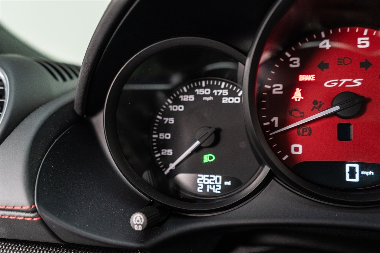 What a recipe for success! Mating a 6-speed manual to a 4.0 L flat six and 400 hp, LET'S GO! The Cayman GTS is that car! Factory options include: Arctic Grey paint, Leather/Race Tex interior in black/carmine red, GTS interior package, Model designation in high gloss black, wheel locks, Porsche Logo in Satin black, LED lights in PDLS, Power steering plus, BOSE Surround Sound system, Pedals in aluminum, Adaptive Sport seats, Rear wing in high gloss black, manual gear shifter in carbon fiber, sun visors Race Tex, Premium package (Entry and drive, Heated Multifunction carbon fiber steering wheel, power folding mirrors, Light design package, Land Change Assist). Freshly serviced by our world class service dept this Cayman GTS is ready for the open road!