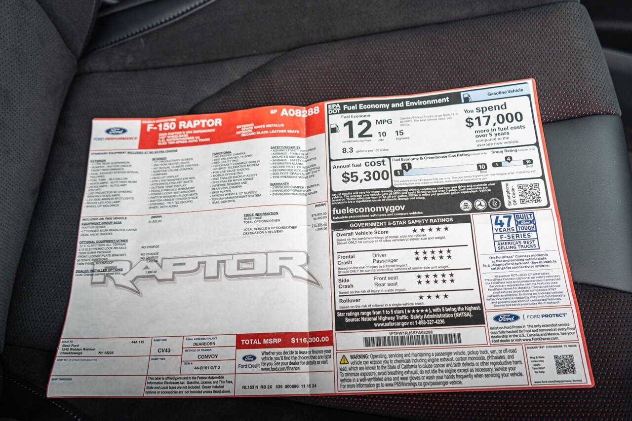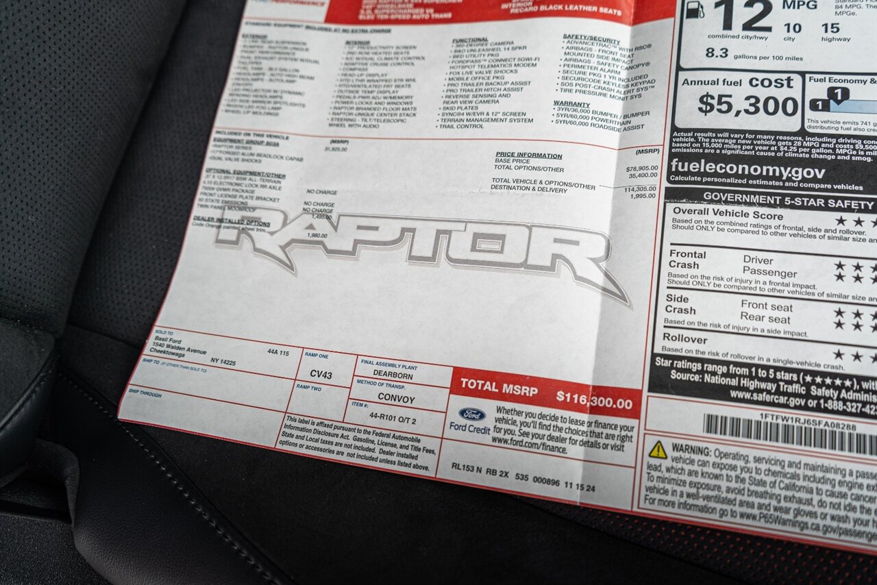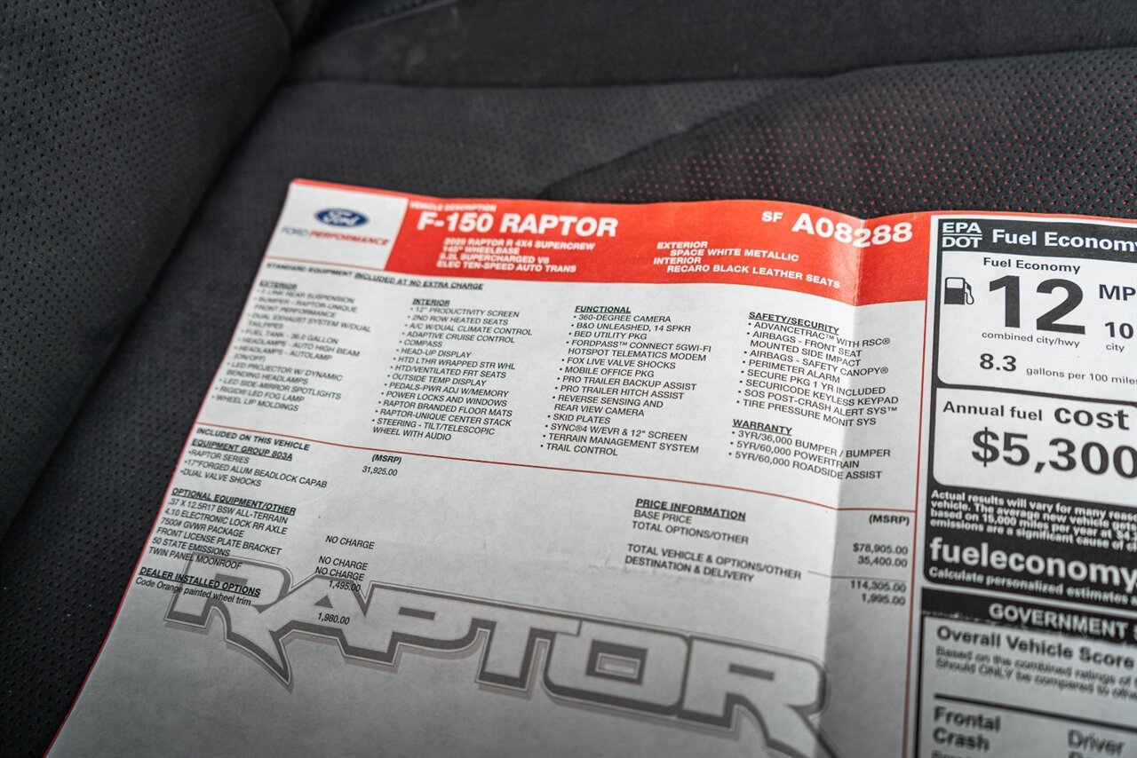 The mighty Raptor R with the 720 HP Predator supercharged V8 is the KING OF THE BAJA TRUCKS! 37" tires with beadlock capable wheels can take you ANYWHERE! The Code Orange wheel trim makes you stand out from the pack. This truck also includes the optional twin panel moonroof. Feel the SUPERCHARGED POWER!