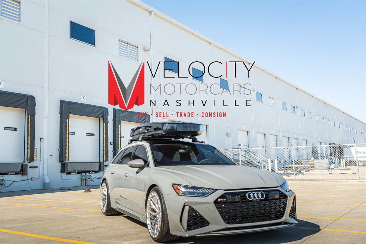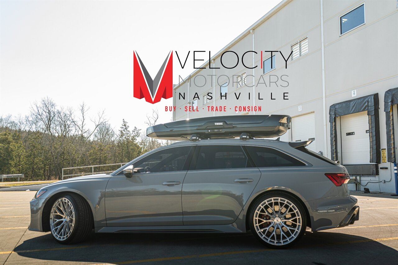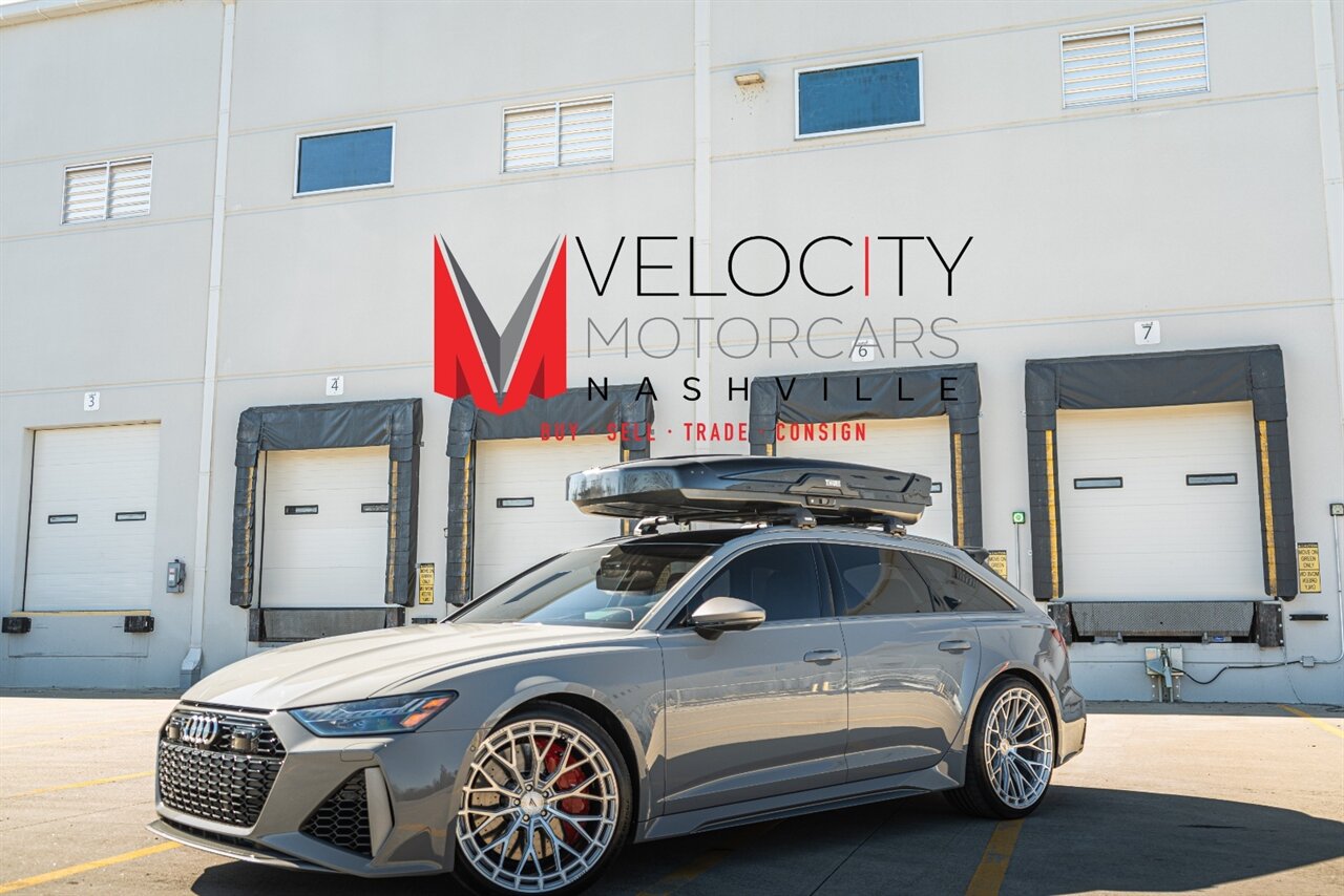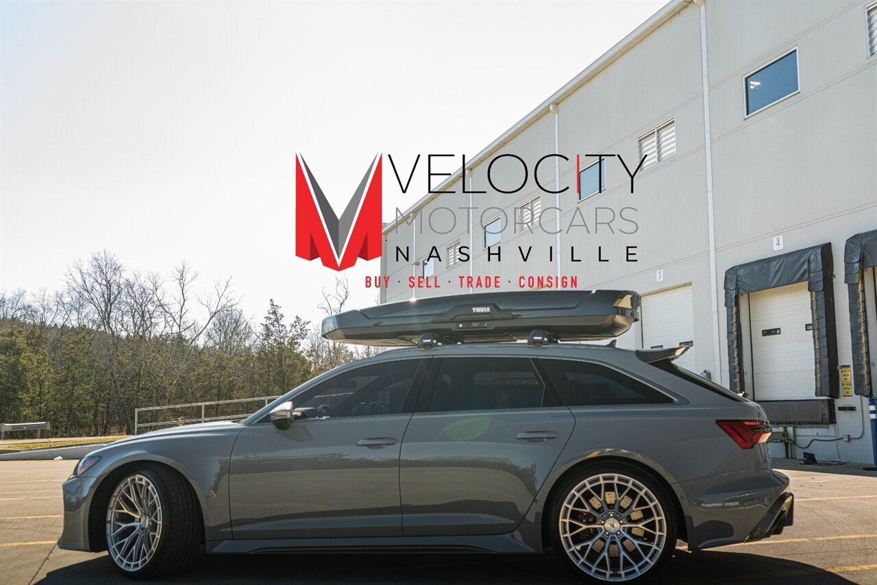 The RS6 Avant provides you with ALL OF IT, Utility, Sport, Power, great looks, sporty drive and sound, LET'S GO! Loaded with the following factory options this wagon will leave you wanting for nothing: Executive Package (Leather, Head up display, heated rear seats, soft close doors, remote park assist), Dinamica Headliner, RS Design package PLUS Red (Alcantara steering wheel, alcantara shift lever and center console slides, red contrast stitching, Black belts with red stitch, RS logo in floor mats with red stitch), Driver Assistance Package( Adaptive cruise control, Audi side assist with pre-sense rear, Intersection assist), RS Sport exhaust, Red brake calipers, interior protection kit. ADDED BONUS is the Thule Cargo carrier with roof rack for all of your new adventures! Freshly serviced and ready for you to enjoy, scoop up this awesome RS6 Avant today!