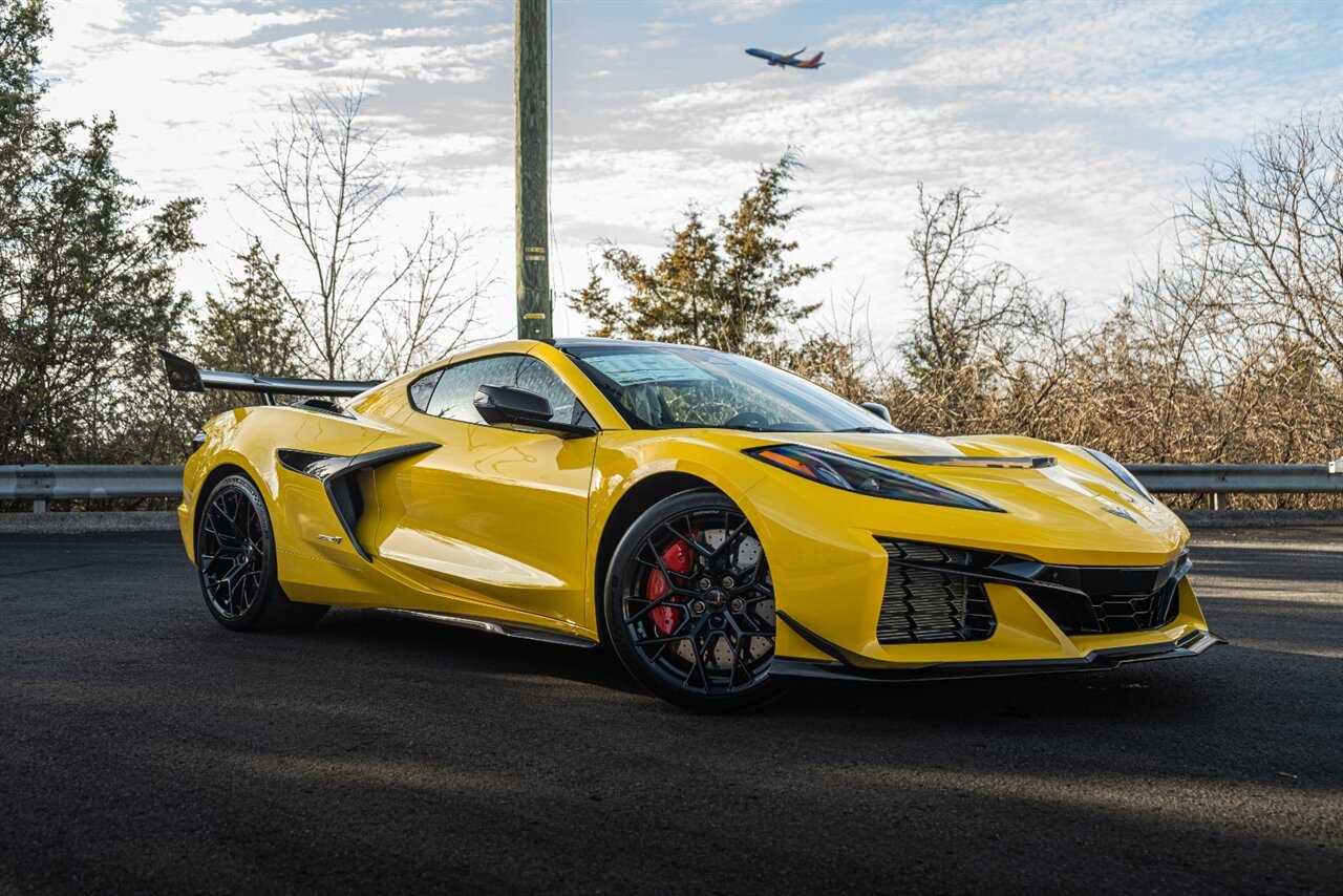 Are you ready for ALL THIS POWER?! Probably not! 1064 is more horsepower than you can handle bud! Go to driving school! This amazing ZR1 is equipped with the following factory features: ZR1 Carbon Fiber Aero Pack, ZTK Performance Track Pack, Carbon Fiber Interior trim Level 2, Carbon fiber X engine brace, Front Suspension Lifter, Dual Roof Package, 20 Spoke Carbon Flash Wheels, Mirrors in visible carbon fiber, Carbon Fiber split window painted body color, Competition Tri Coat Yellow, Bright Red brake calipers, Carbon fiber suede steering wheel, Suede seat inserts, Stealth interior trim package, Competition Sport bucket seats, Indoor car cover, Black Exhaust tips, carpeted floor mats, chrome badging, Black lug nuts, battery protection package. It's the King of the Hill, can you handle it?