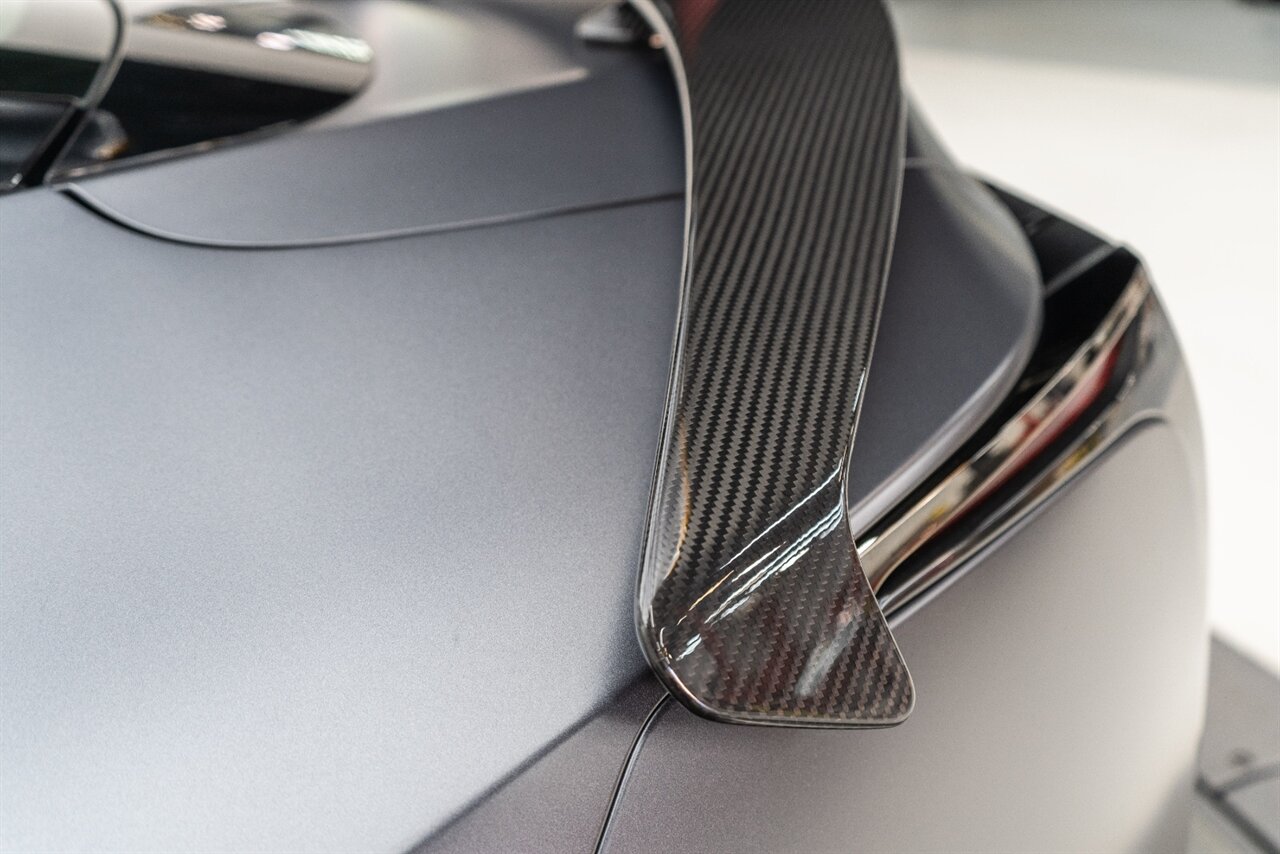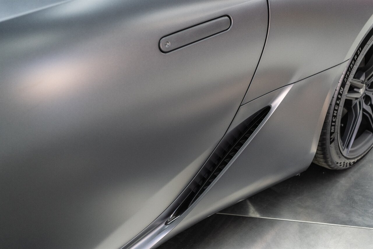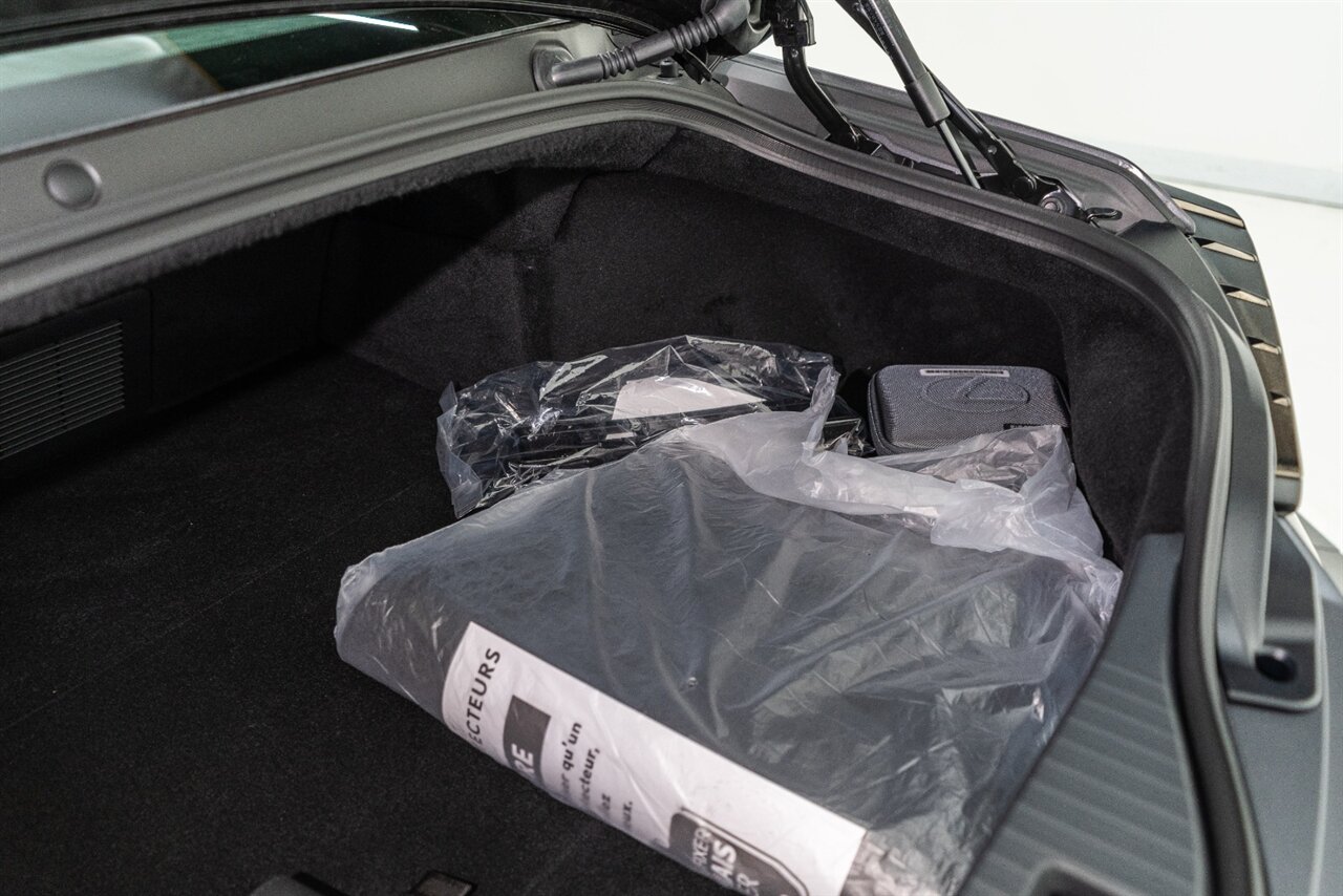 This exclusively numbered Inspiration Series coupe is a sight to behold! The stunning 2 tone interior is complemented by the mysterious Smoke matte paint. The Inspiration Series coupes are more performance oriented than the convertibles. Carbon Fiber roof, Limited Slip Rear differential, active damping suspension and active rear steering complement this collector piece.